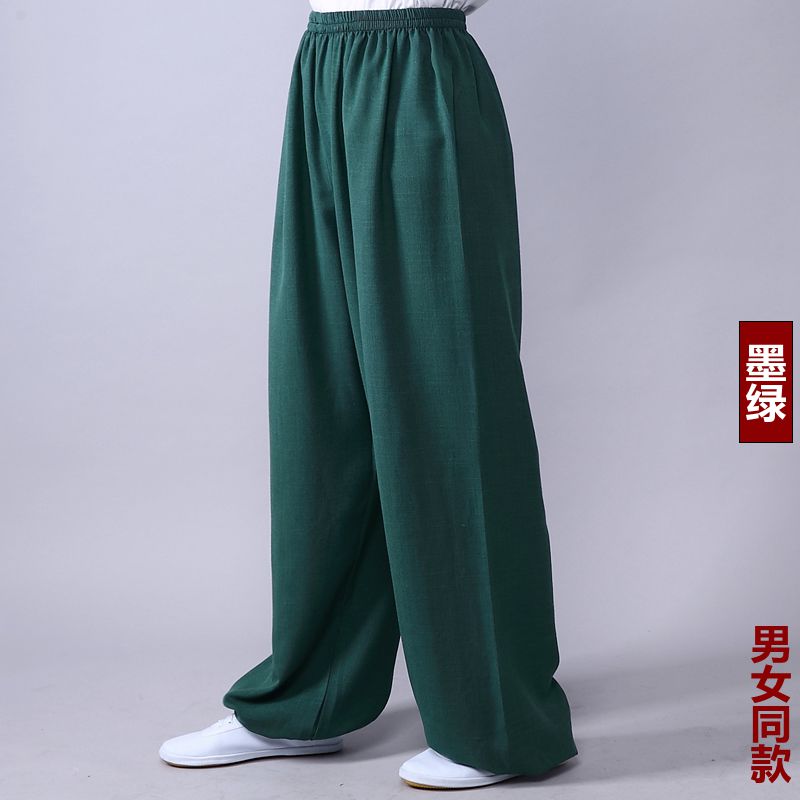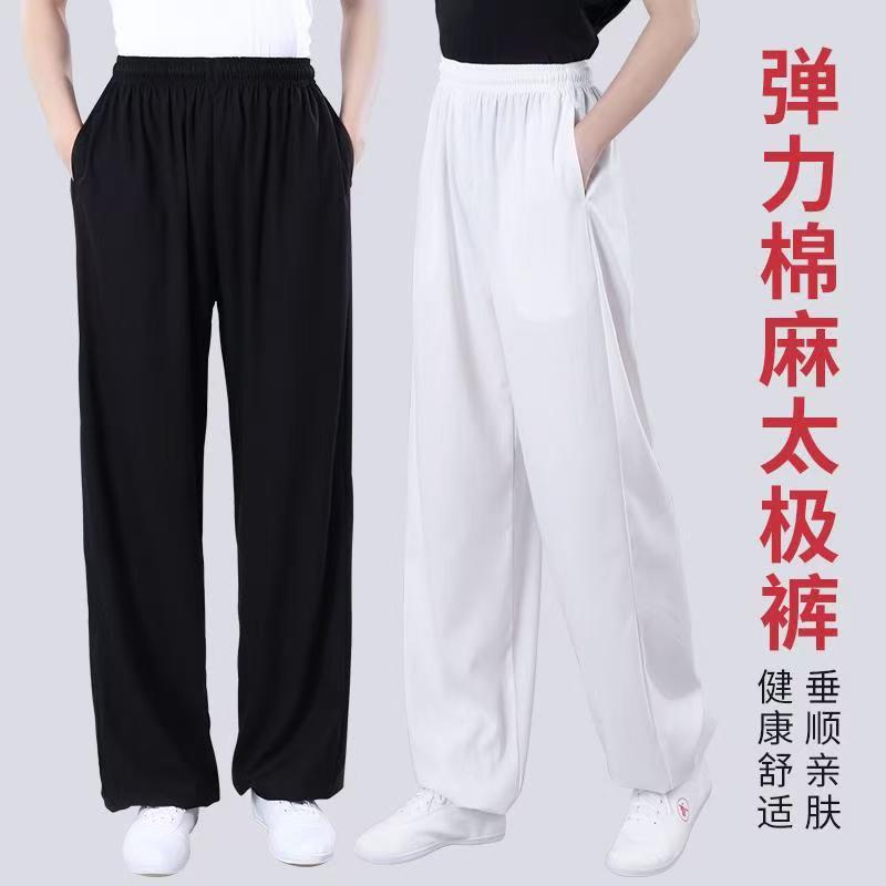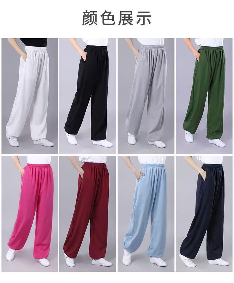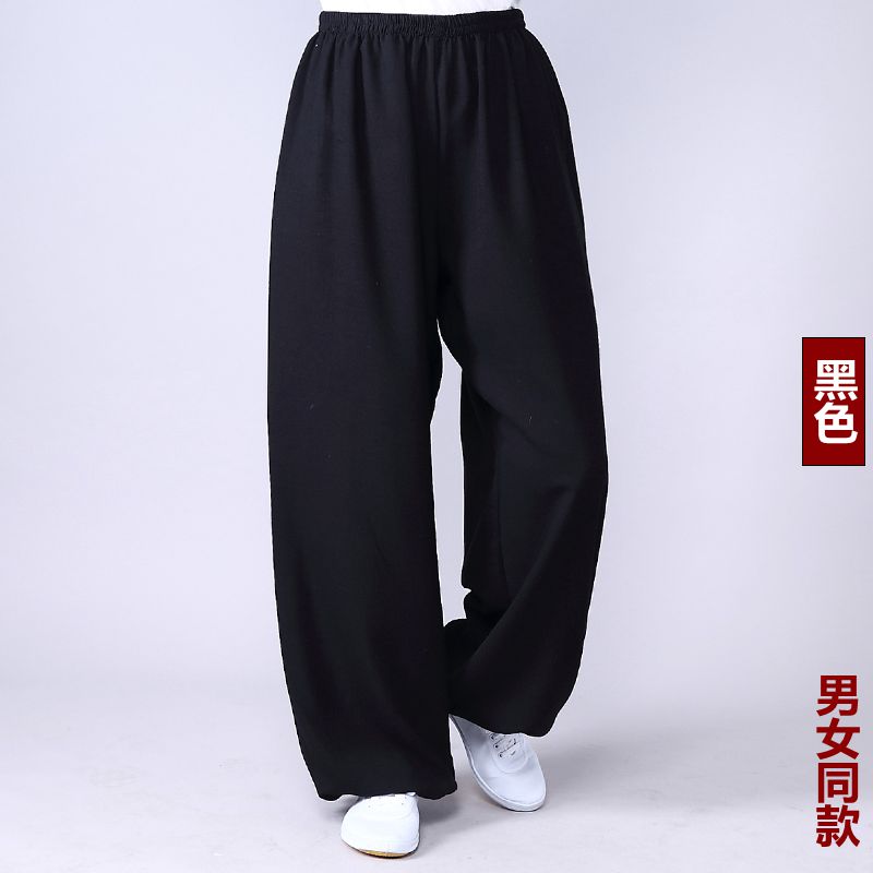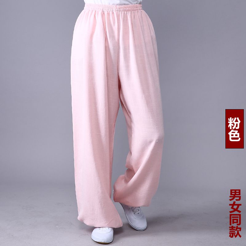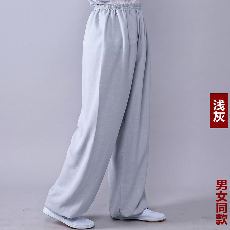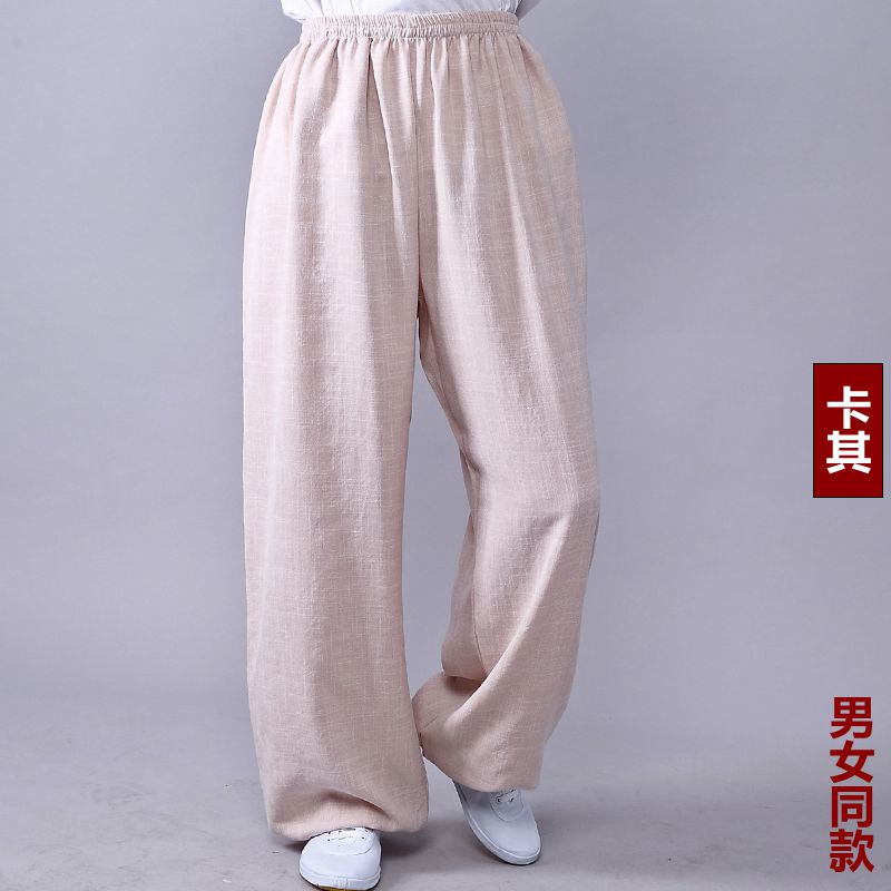 Высококачественные брюки для тай-чи из хлопка и льна для весны и лета, тренировочные брюки для мужчин и женщин, брюки-фонарики, брюки для боевых искусств, дышащие брюки для тай-чи и утренних упражнений для йоги