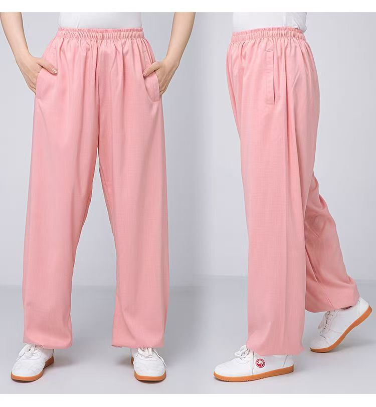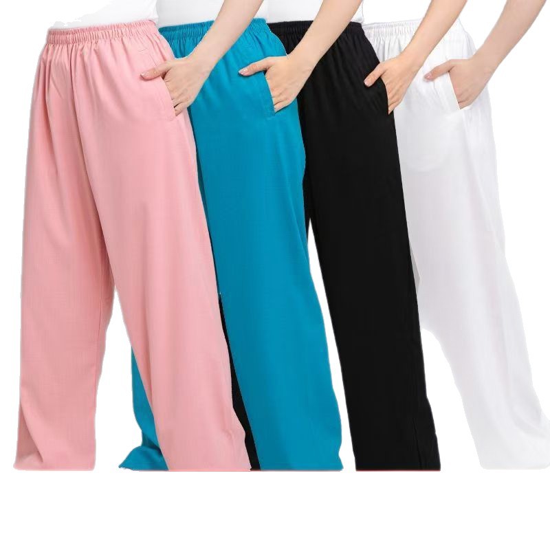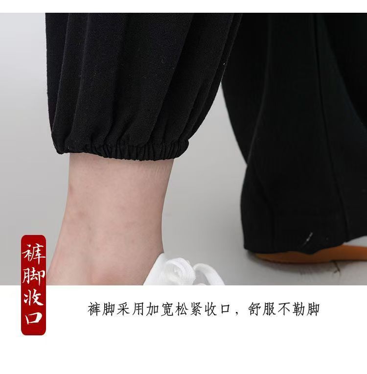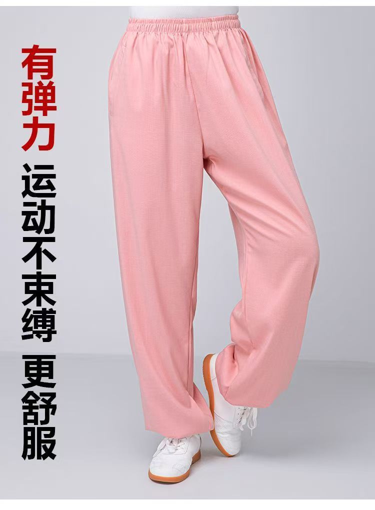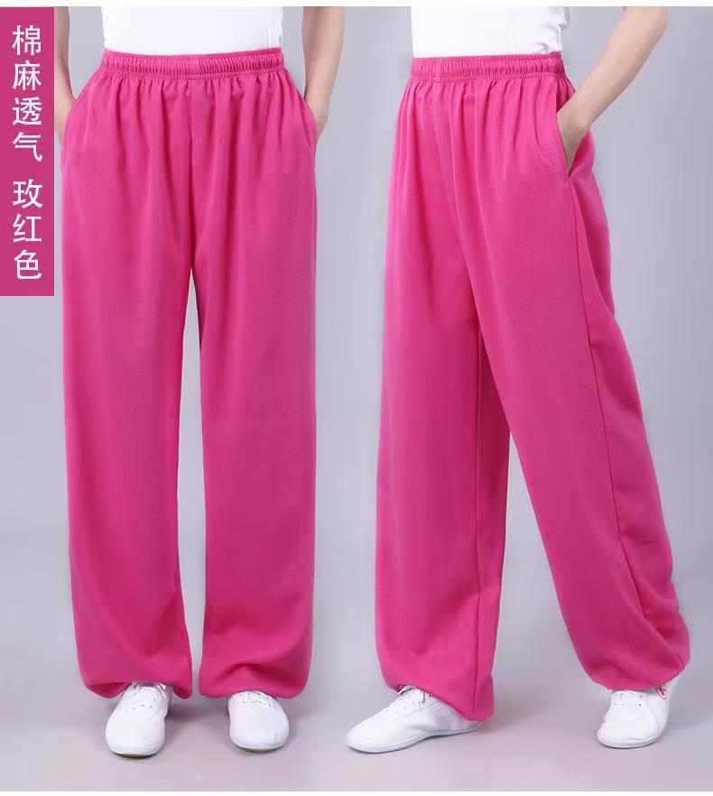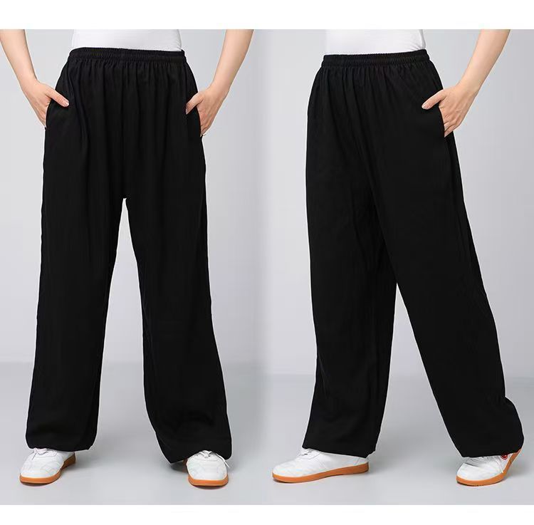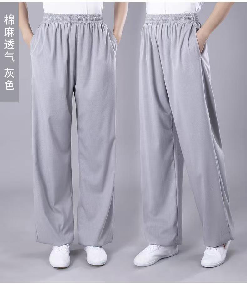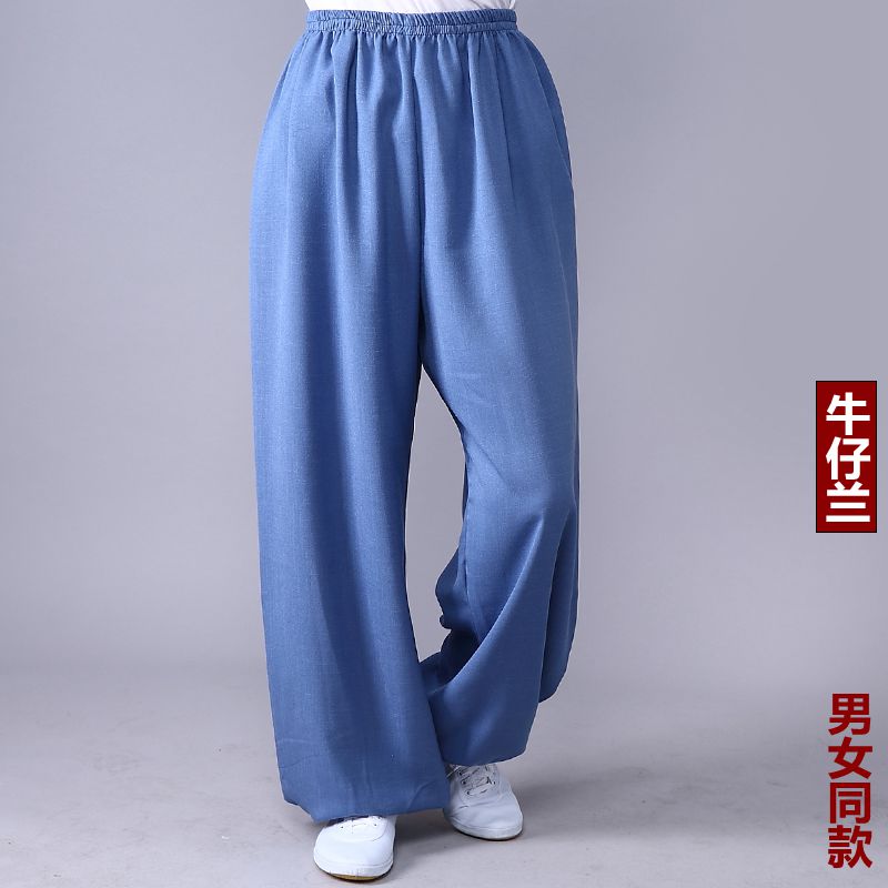 Высококачественные брюки для тай-чи из хлопка и льна для весны и лета, тренировочные брюки для мужчин и женщин, брюки-фонарики, брюки для боевых искусств, дышащие брюки для тай-чи и утренних упражнений для йоги