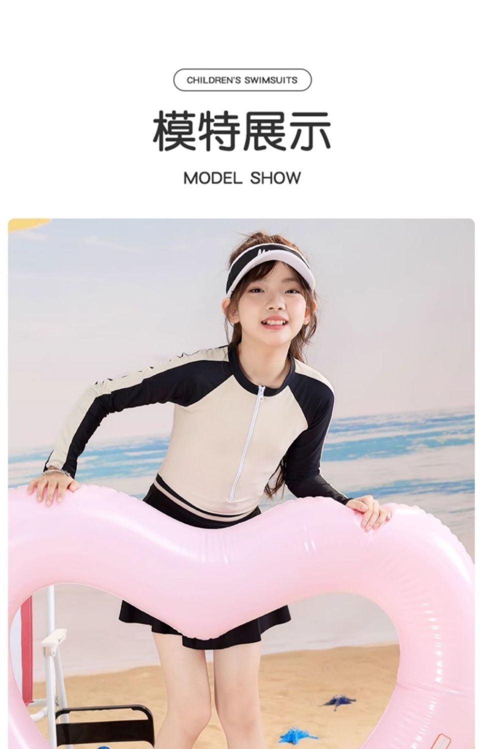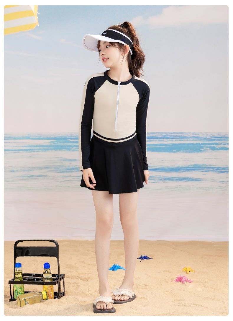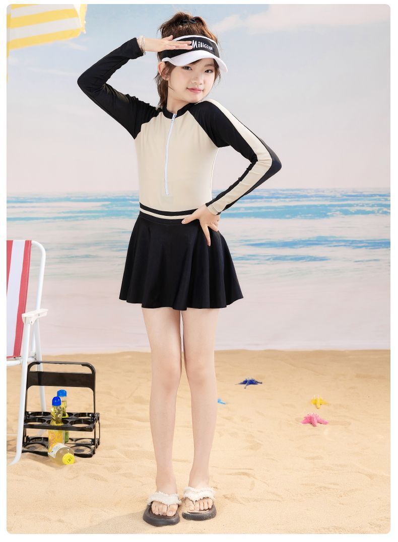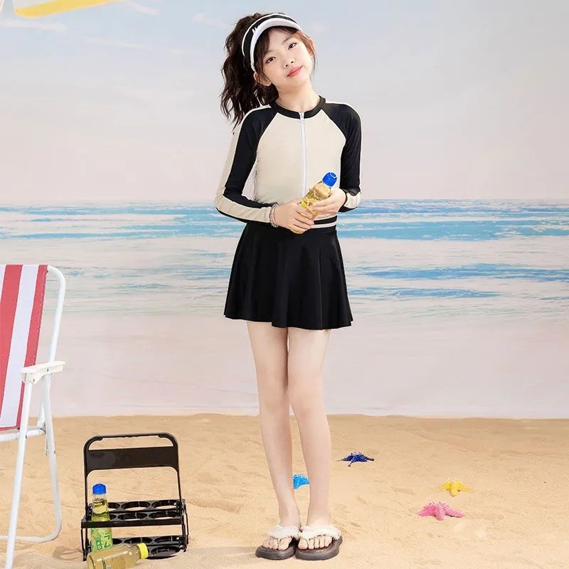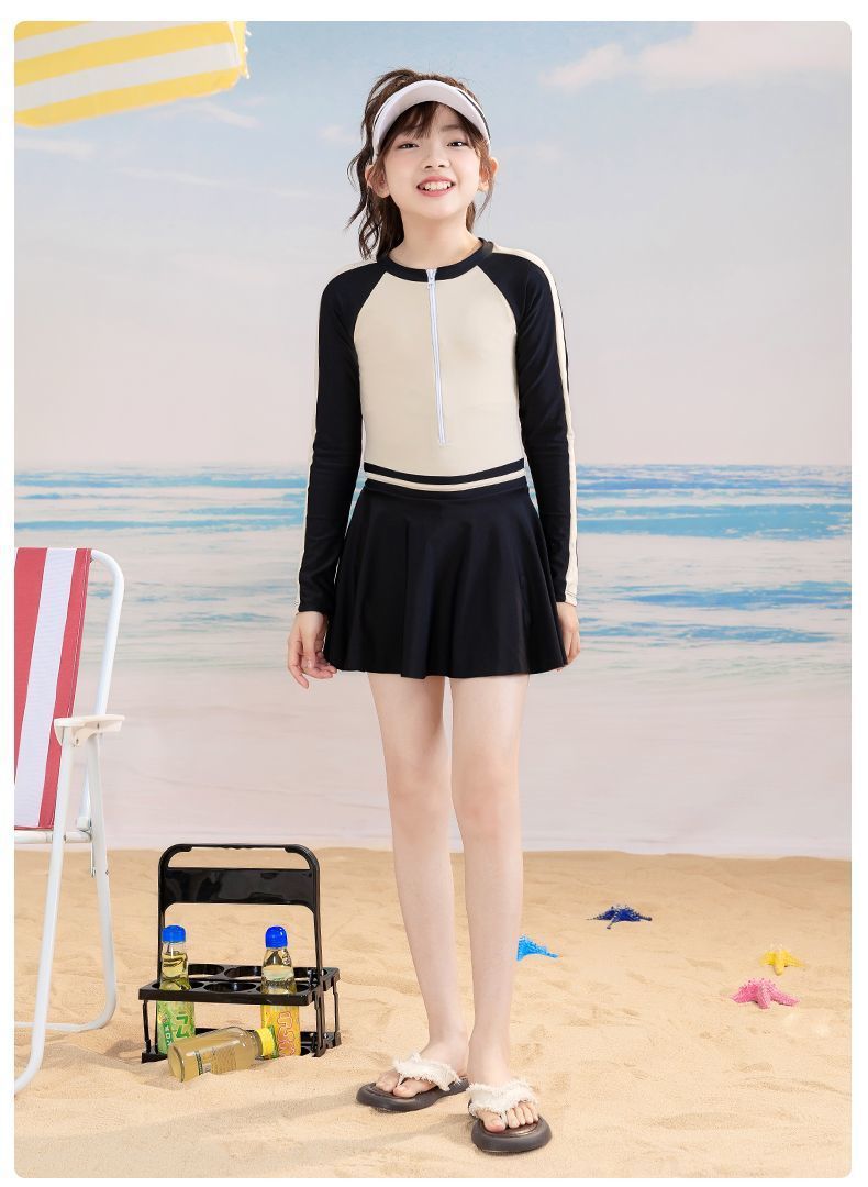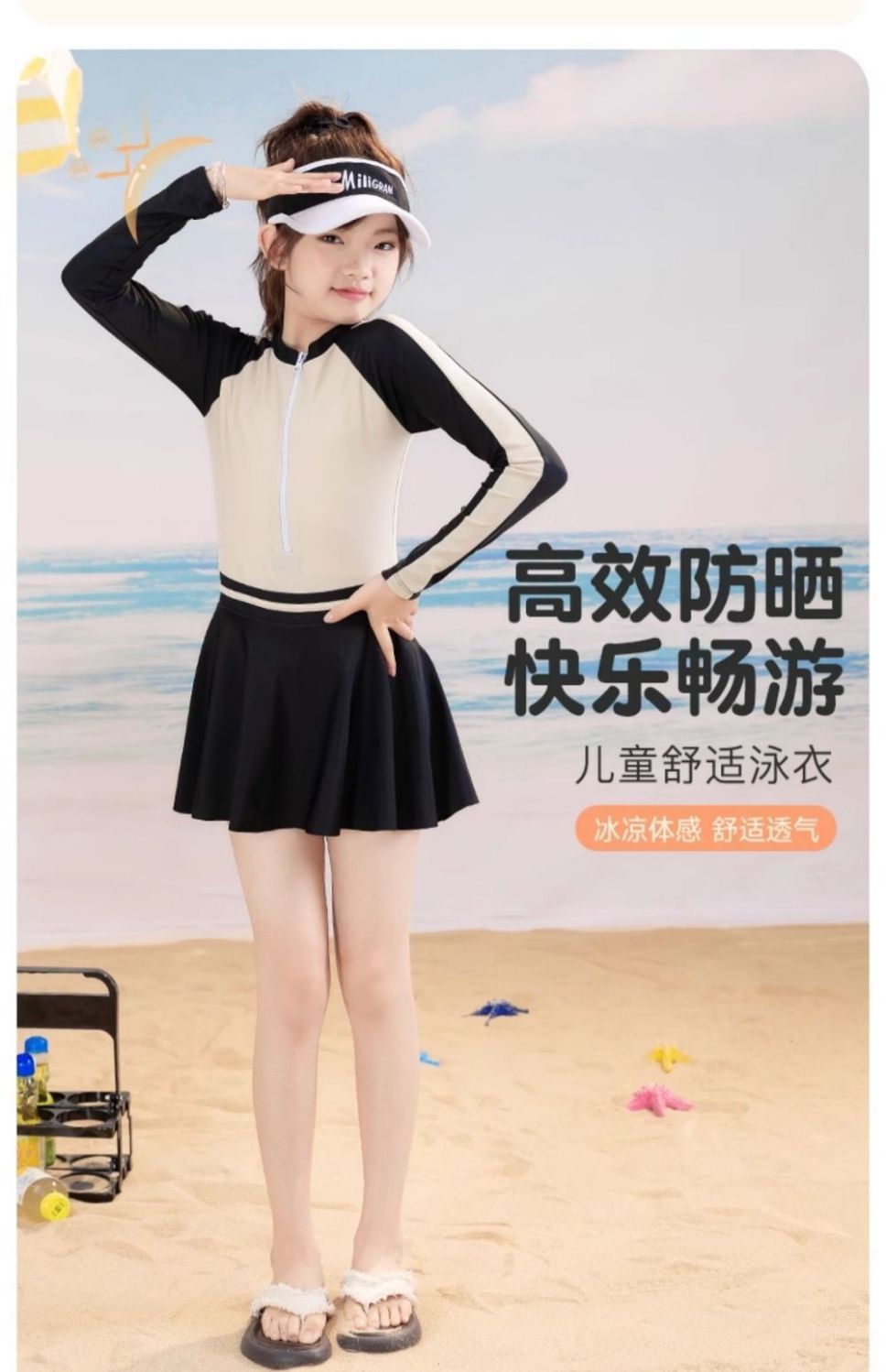 Детский купальник-патчворк для девочек, лето 2025, новый стиль, средний и большой размер, высококачественный, с длинным рукавом, защита от солнца, цельный купальник