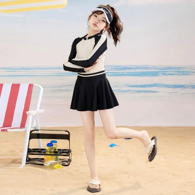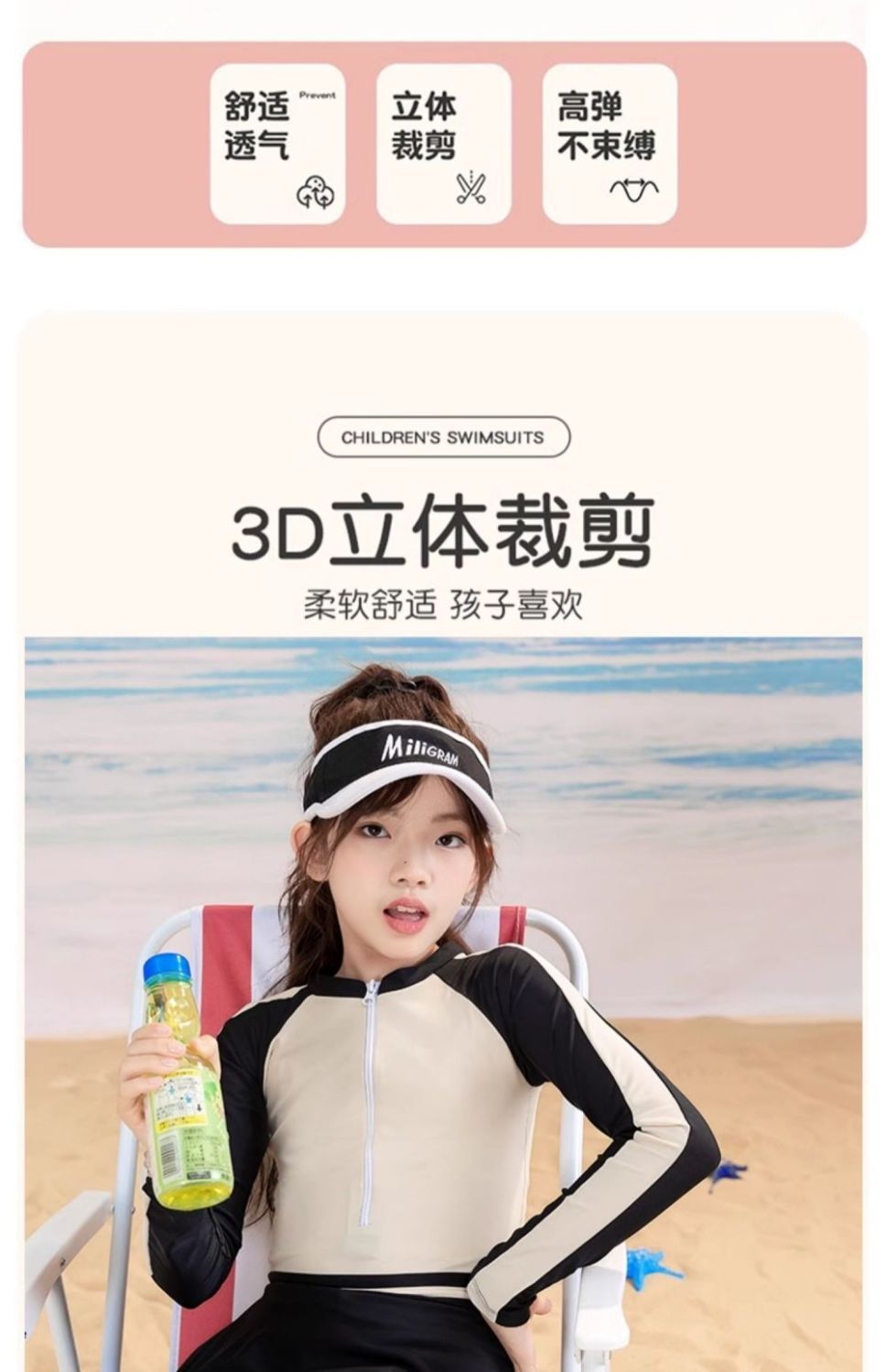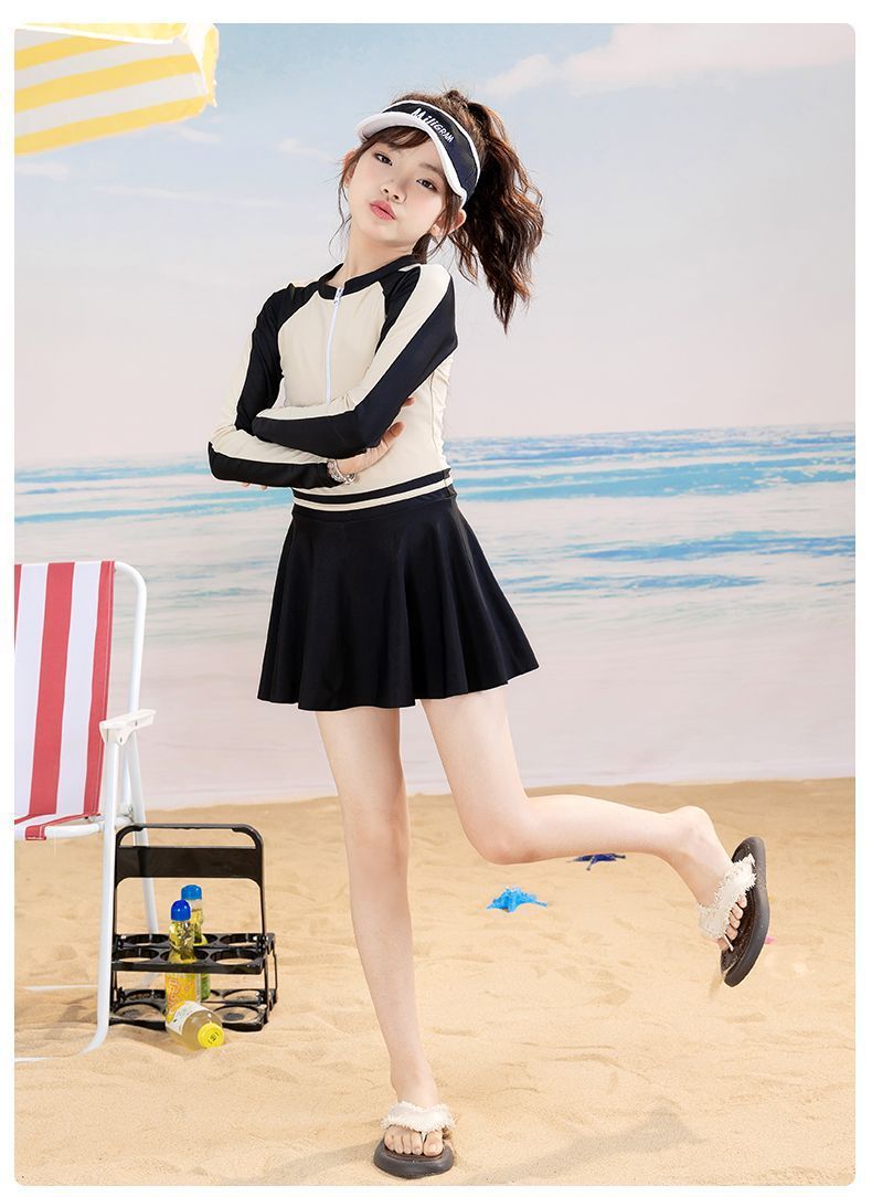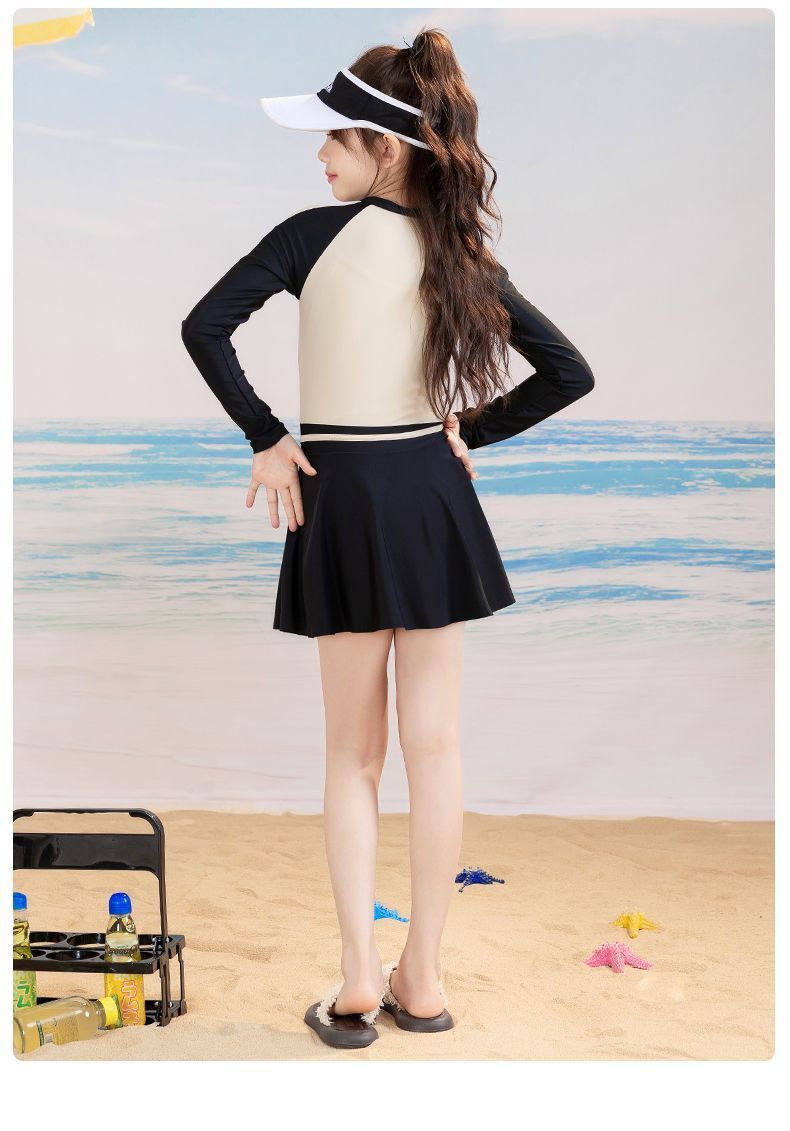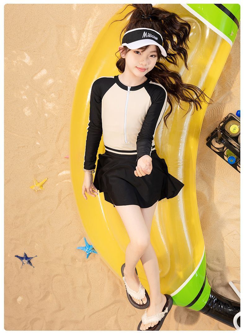 Детский купальник-патчворк для девочек, лето 2025, новый стиль, средний и большой размер, высококачественный, с длинным рукавом, защита от солнца, цельный купальник