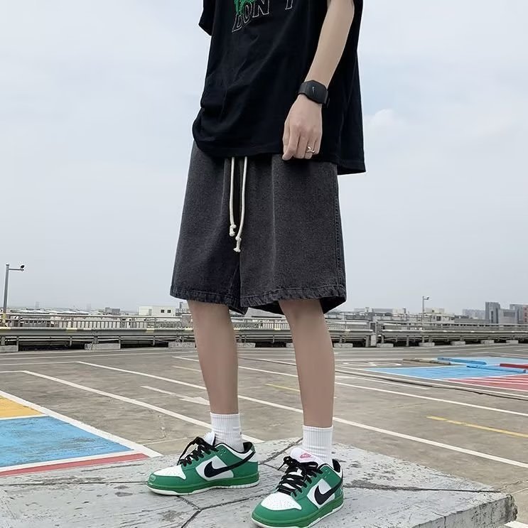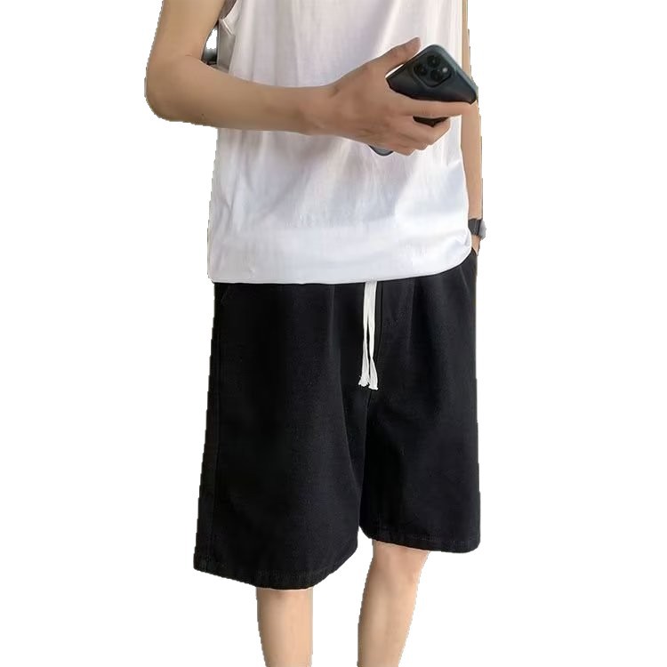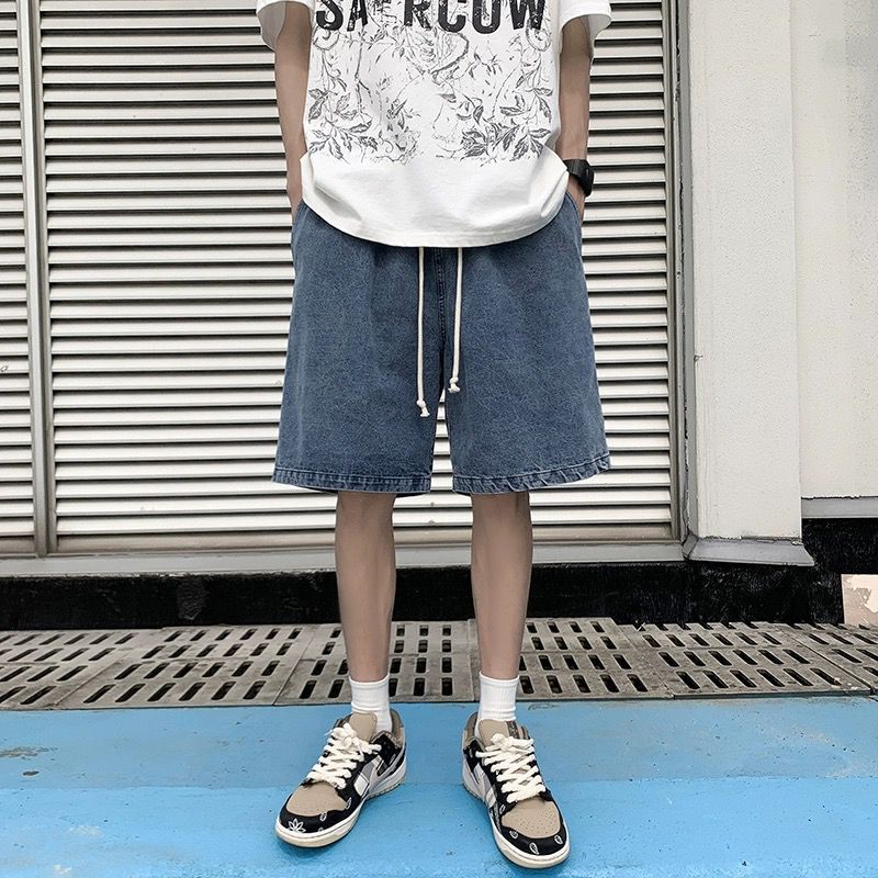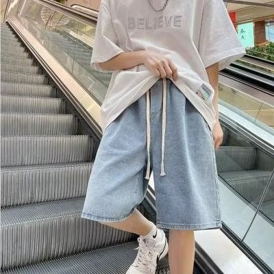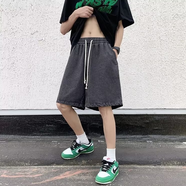 Мужские летние джинсовые шорты на экспорт, стиль Гонконг, свободный крой, эластичная талия, средней длины, прочные, повседневные, спортивные, модный бренд.