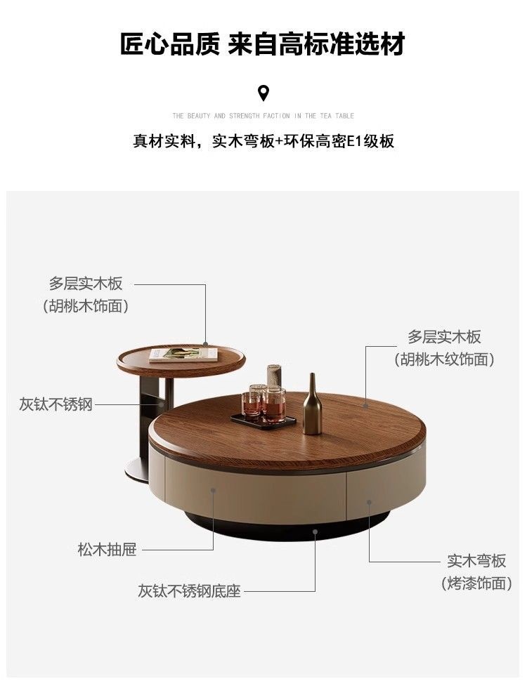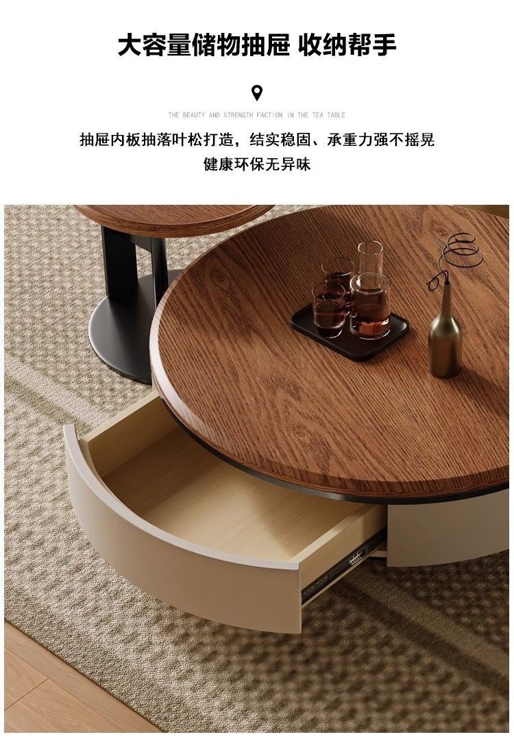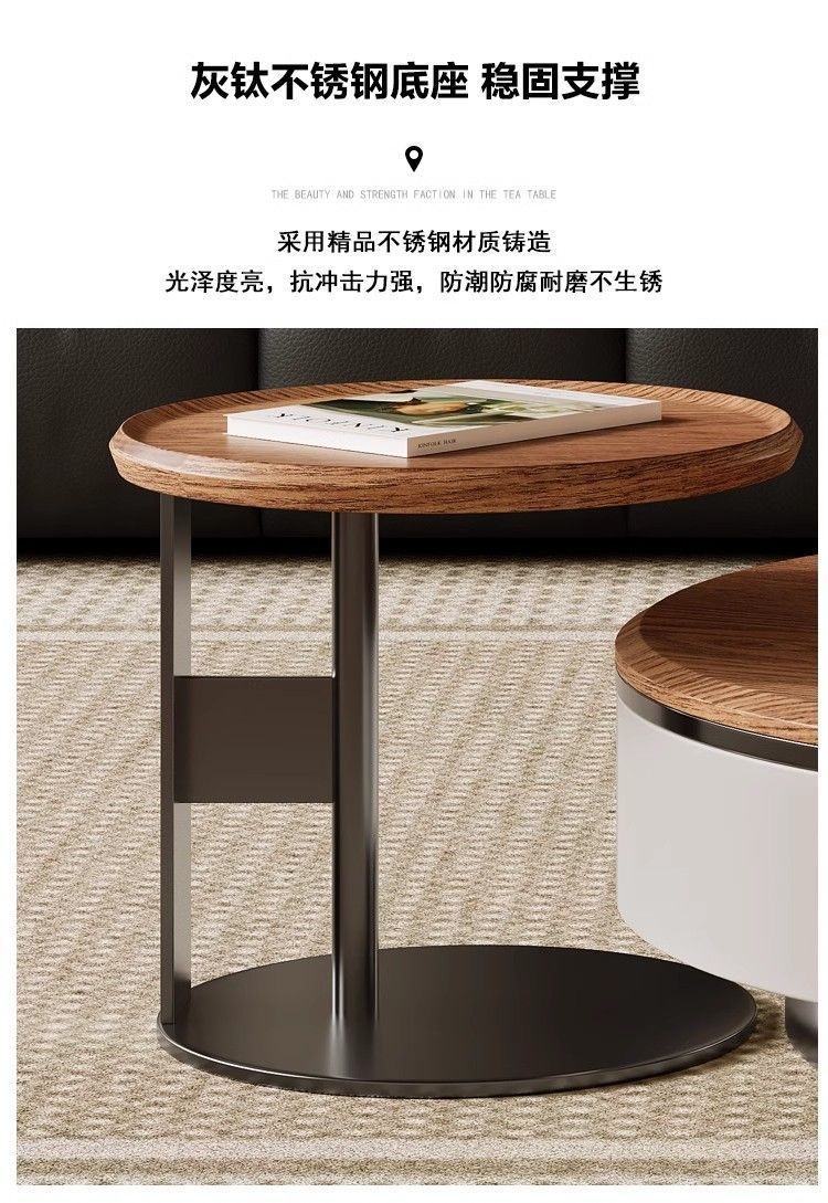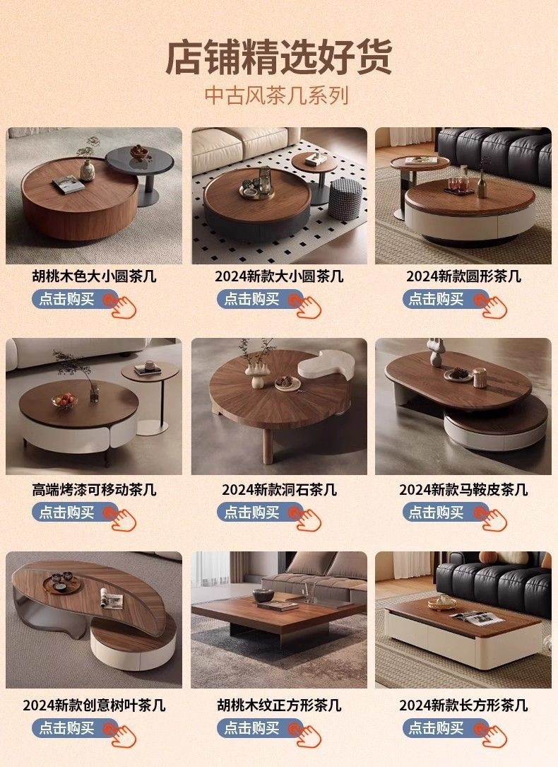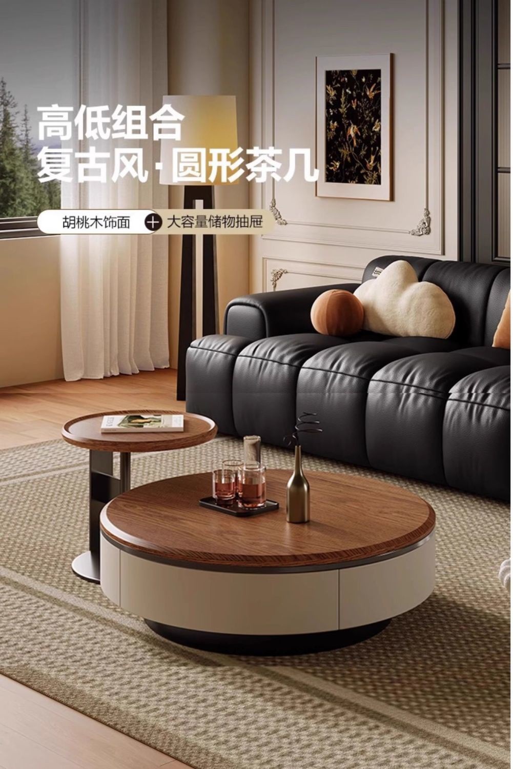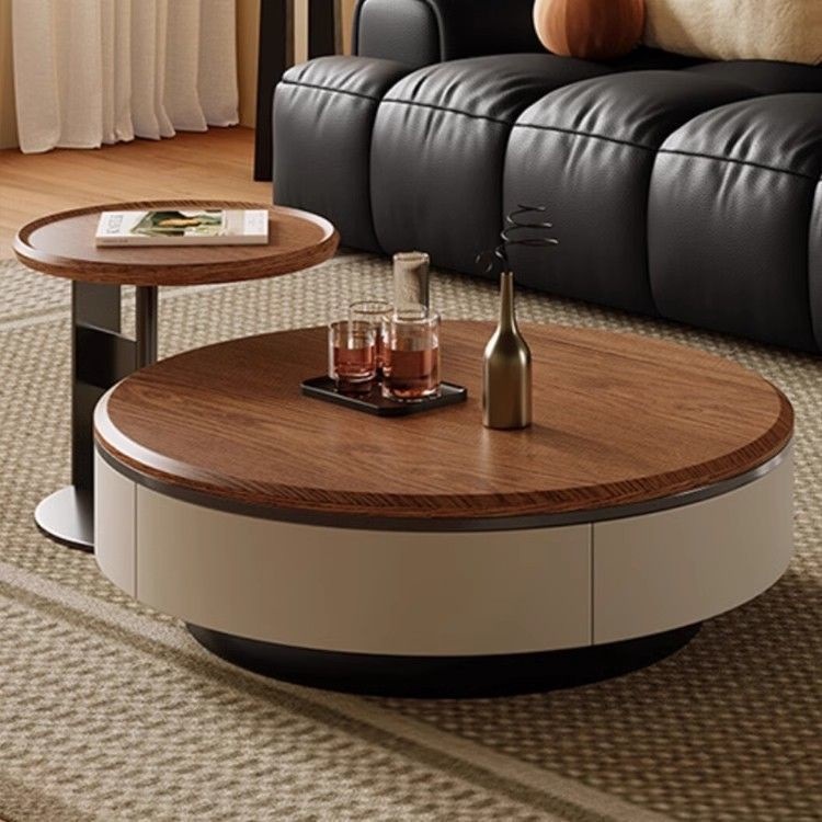 Журнальный столик в средневековом стиле, круглый, из массива дерева, многослойный, цвет ореха, современный, простой, доступный, роскошный, для гостиной, домашний, новый стиль 2025 года