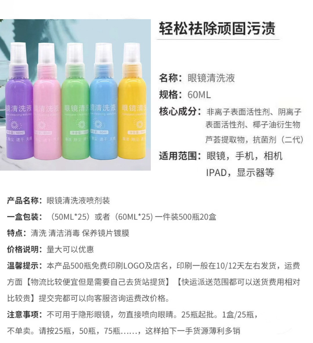 Жидкость для чистки очков с напечатанным названием магазина, жидкость для чистки линз, средство для чистки очков, средство для чистки линз, раствор для ухода за экраном 60 мл