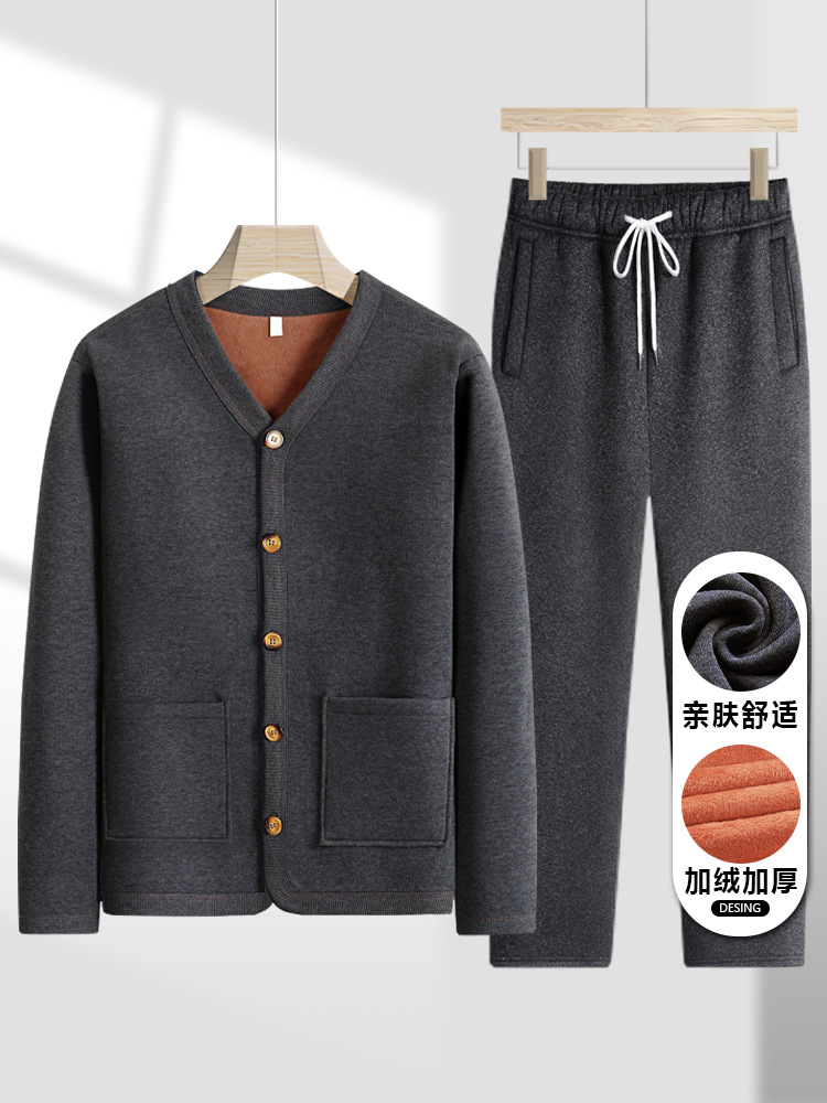 Повседневная куртка с v-образным вырезом для среднего и пожилого возраста, мужской супермягкий бархатный костюм, кардиган для папы, весенне-осенняя одежда для пожилых людей и дедушки, большие размеры