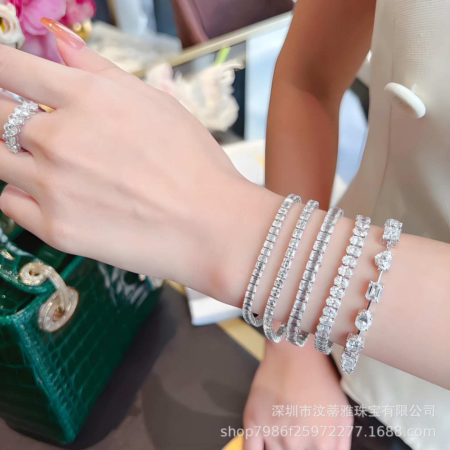 Теннисный браслет из белого золота 18 карат с инкрустацией изумрудов, каплевидный овальный искусственный бриллиант, выращенный в лаборатории