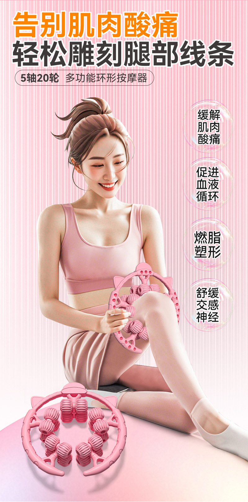 Новый массажер для ног на 20 шариков с круговыми роликами для расслабления мышц бедра и голени, растяжки сухожилий и йоги-колесо.
