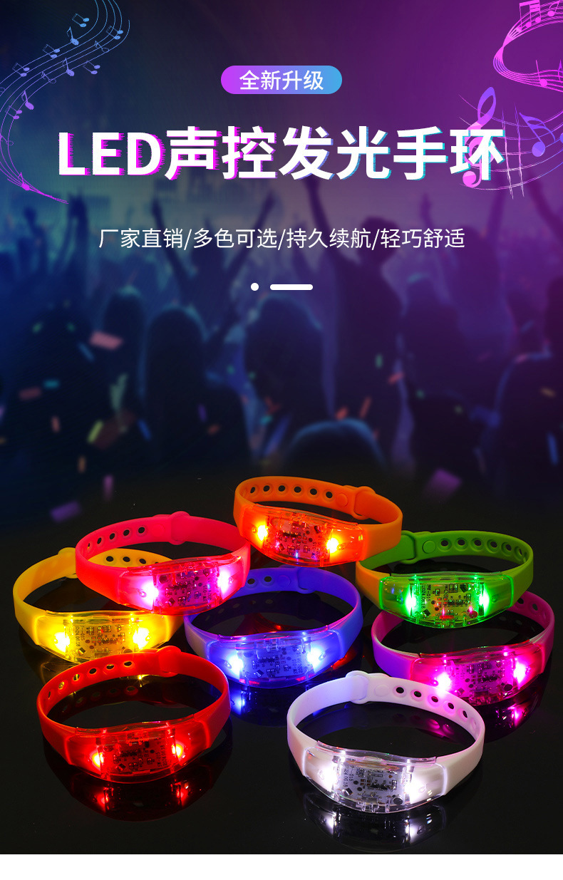 Браслет с подсветкой, вибрационной кнопкой, активируемой голосом, светящийся ремешок на запястье, оптом, для концертов и поддержки