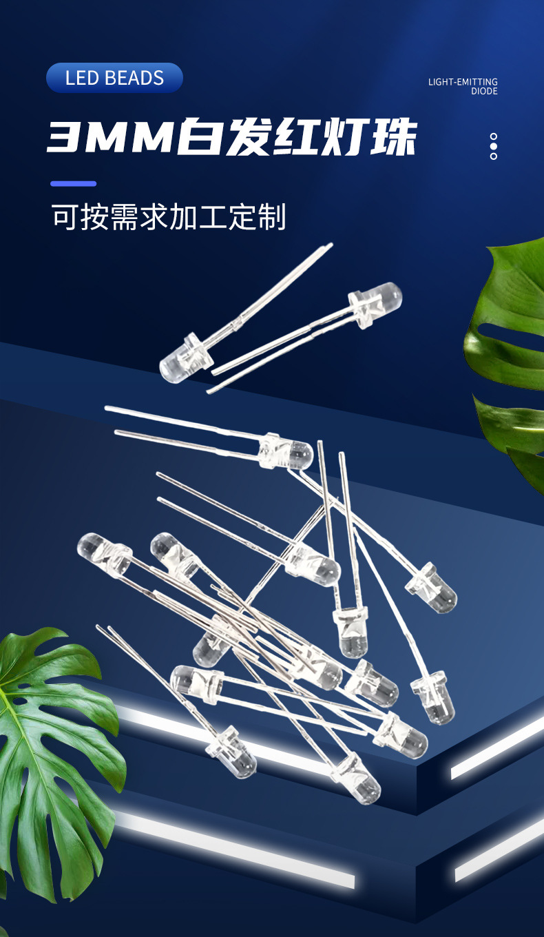3 мм белые волосы, красный свет, круглые волосы, светодиод, светодиод, прямая подключаемая лампа, бусина, механическая клавиатура, индикаторное оборудование для дронов