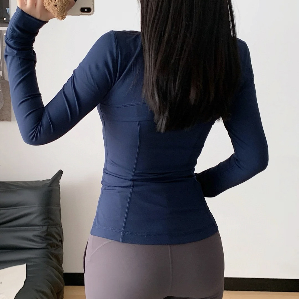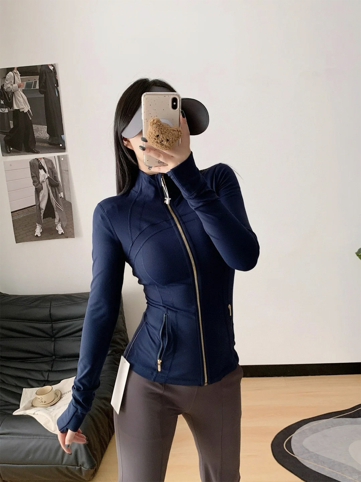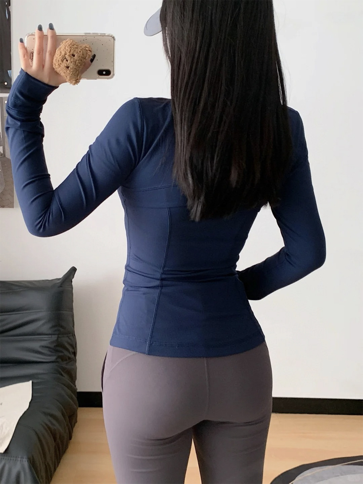 Женская спортивная куртка для йоги без сетки, двусторонняя, с начесом, эластичная, приталенная, с воротником-стойкой, для весны и лета, приятная к коже