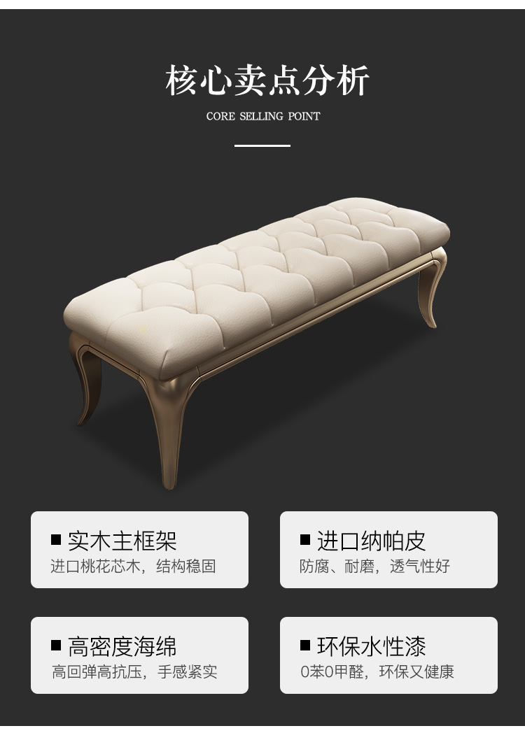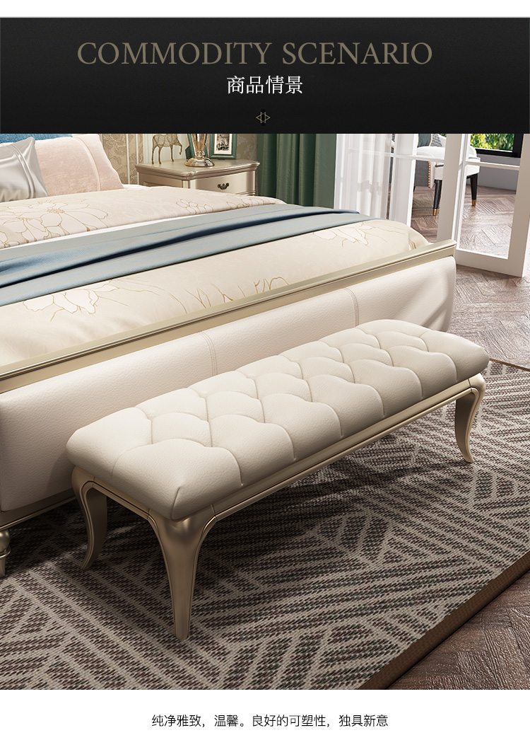 Американский табурет для кровати из массива дерева и кожи Panna, постмодернистский стиль, легкая роскошь, простой табурет для спальни, табурет для кровати, дивана или пальто.