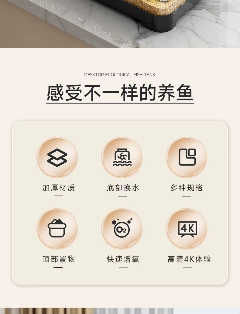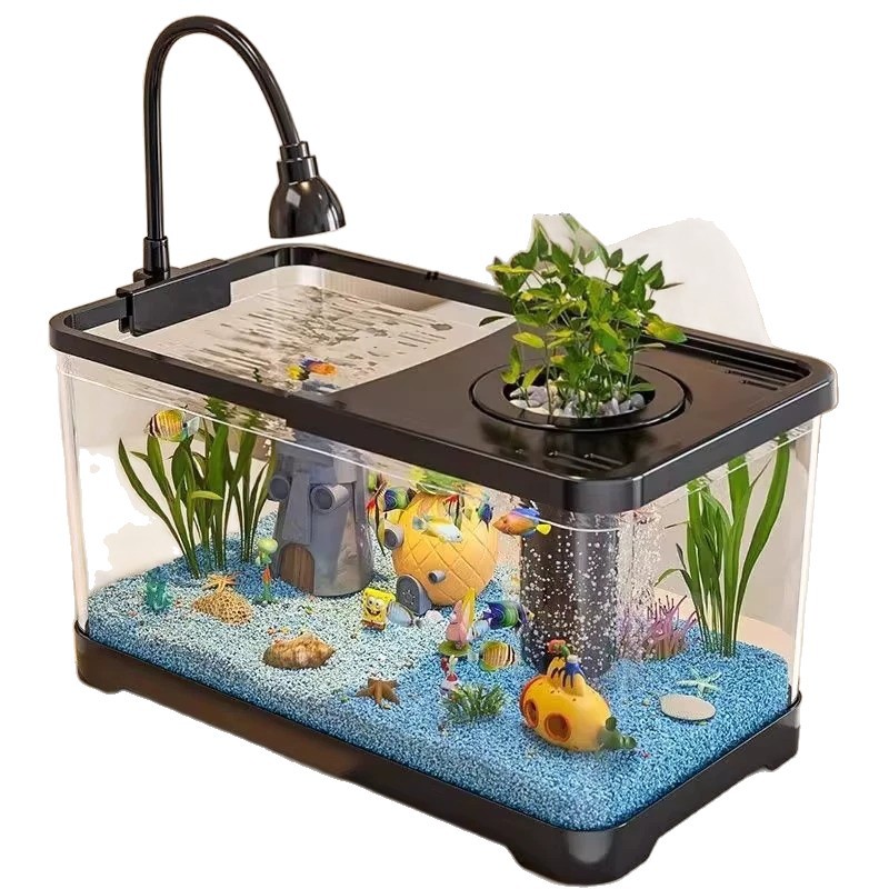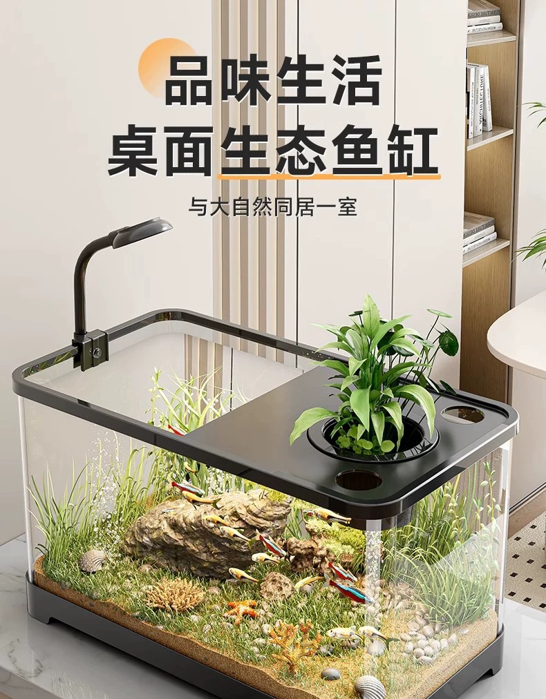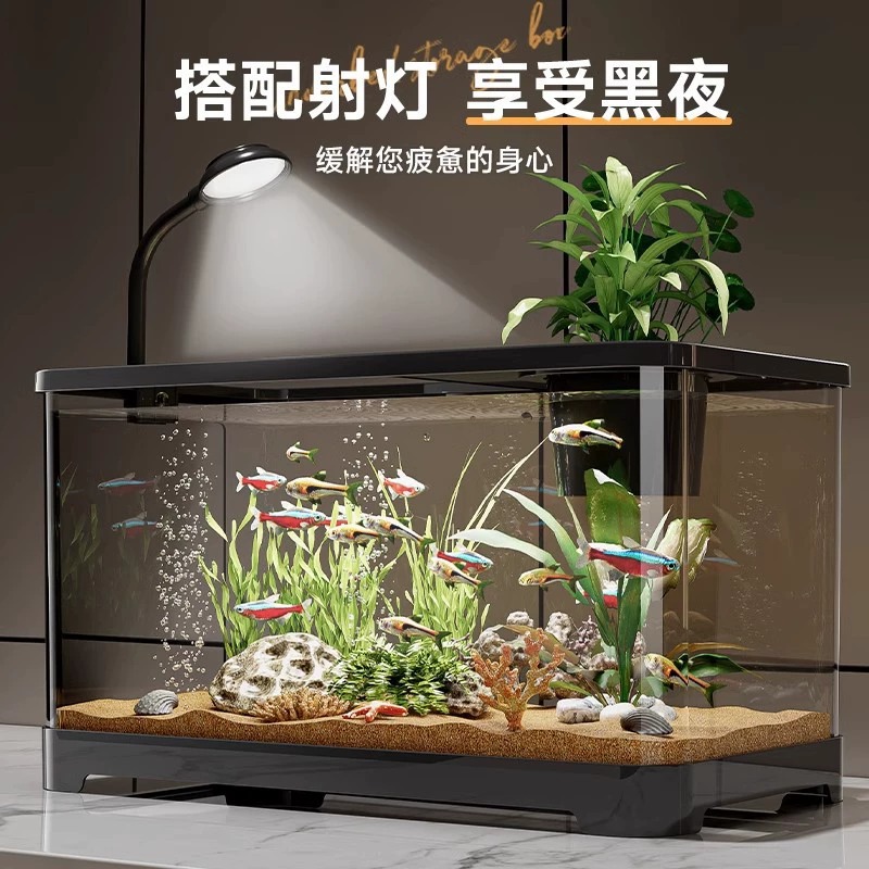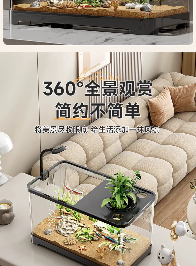 Аквариум для маленькой гостиной 2025, новый комплект для ландшафтного дизайна дома, экологический аквариум с крышкой, прозрачный настольный аквариум для золотых рыбок