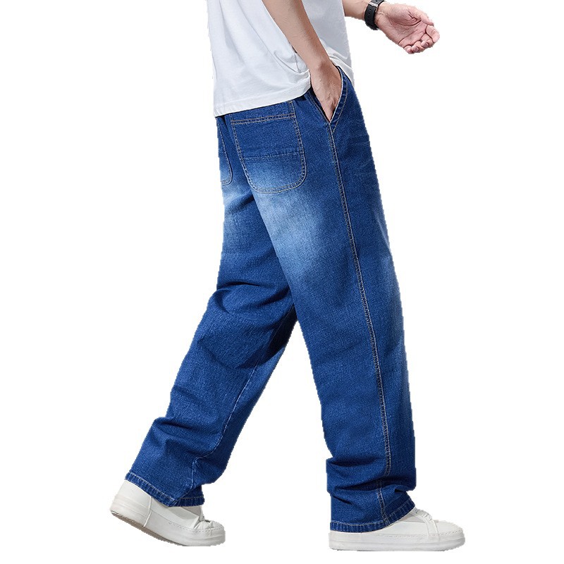 Мужские джинсы больших размеров, свободные прямые широкие брюки, мужские брюки больших размеров, эластичные мужские брюки с высокой талией