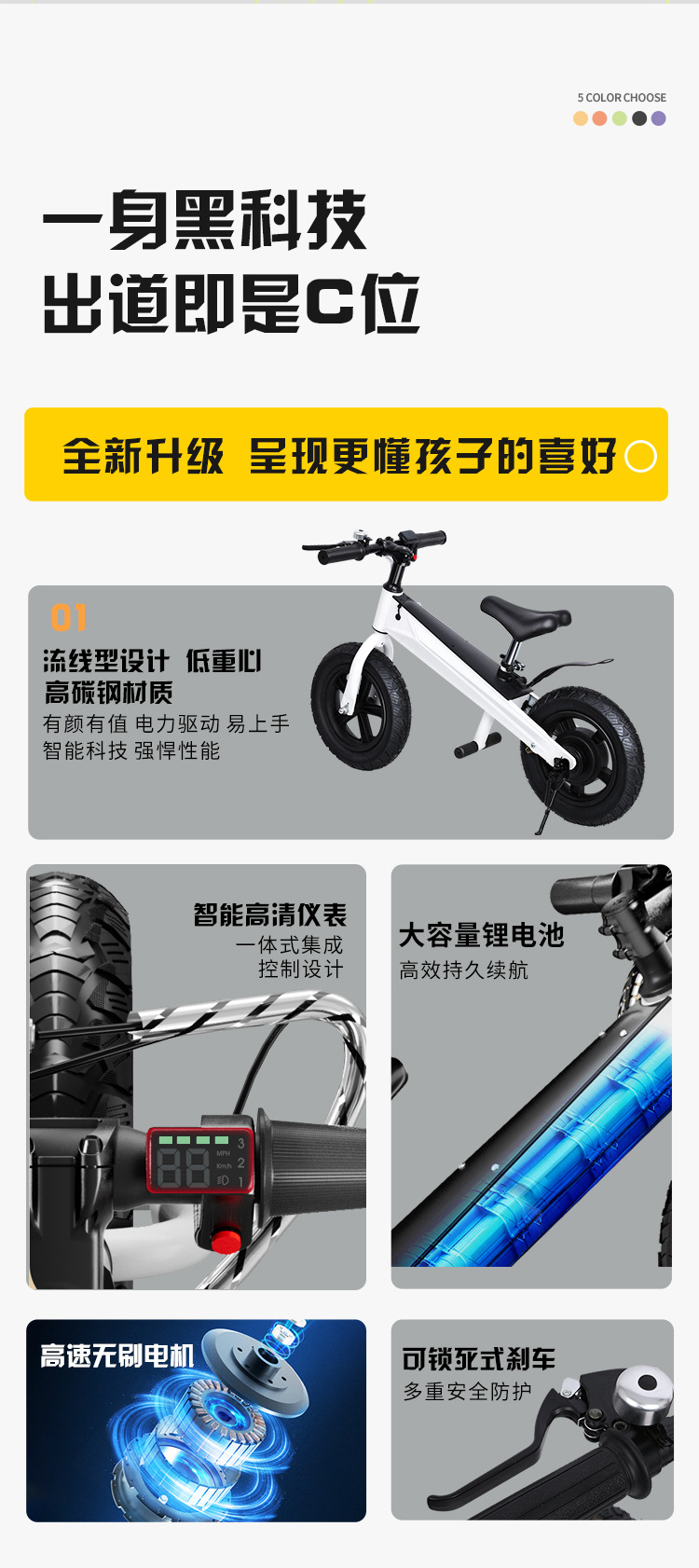 Новый детский велосипед с электрической регулировкой скорости. Новый электрический детский балансировочный велосипед для мальчиков и девочек.
