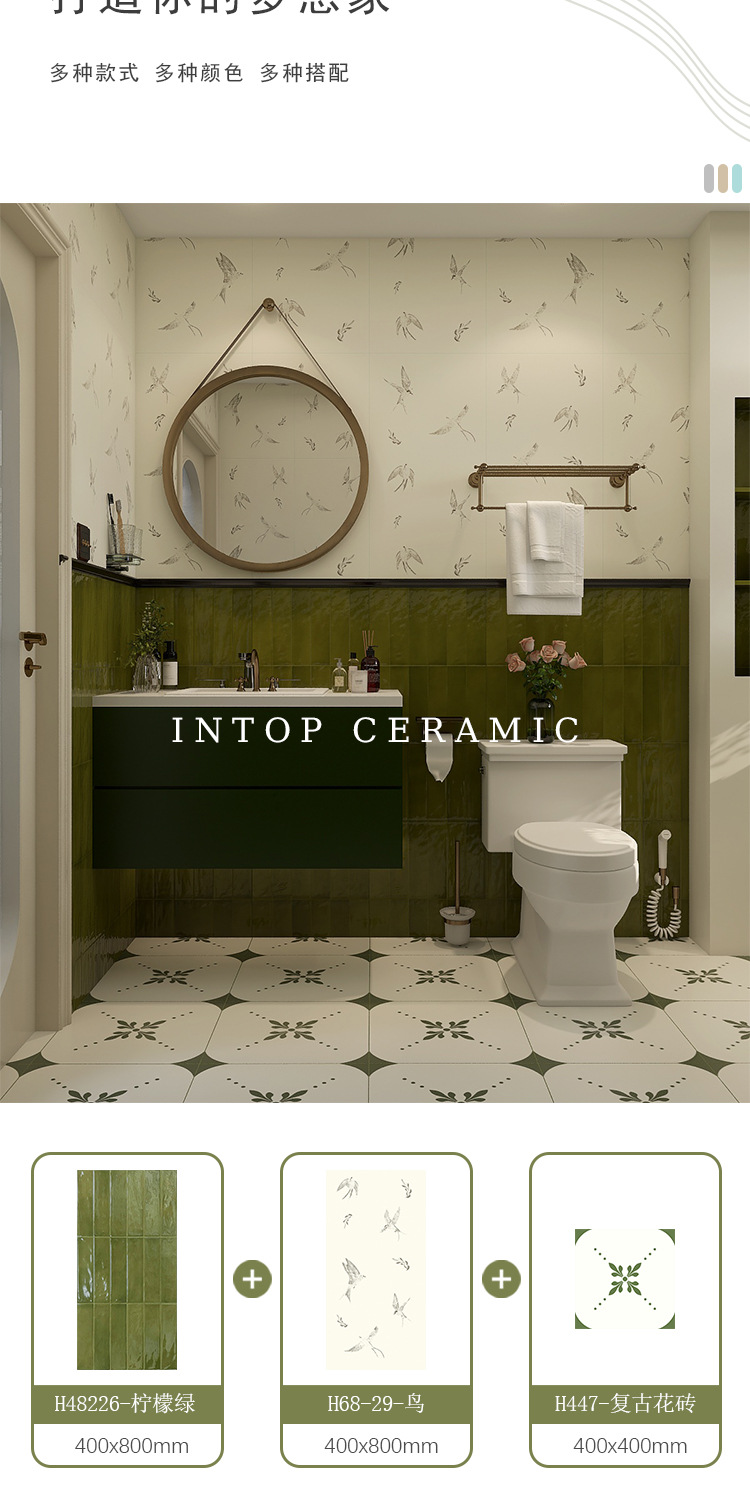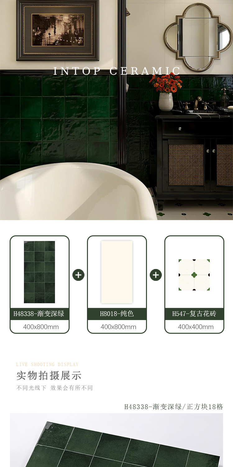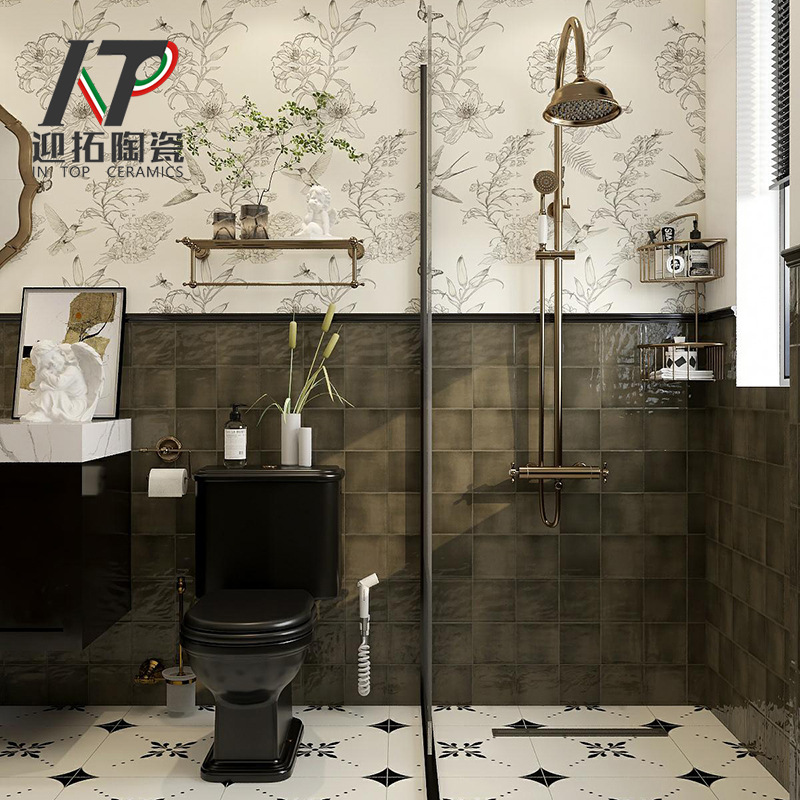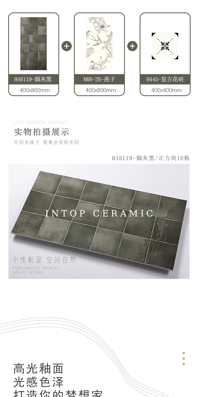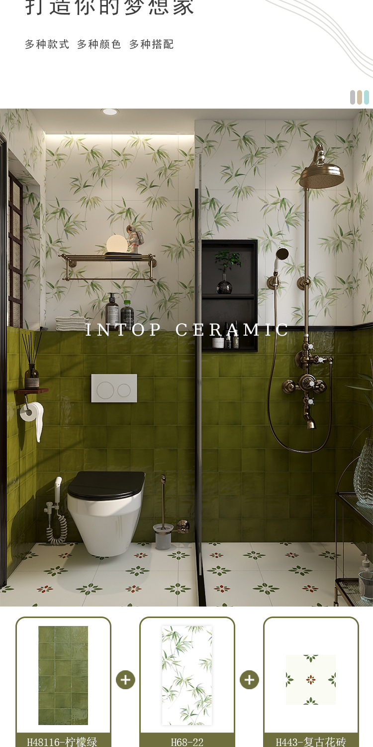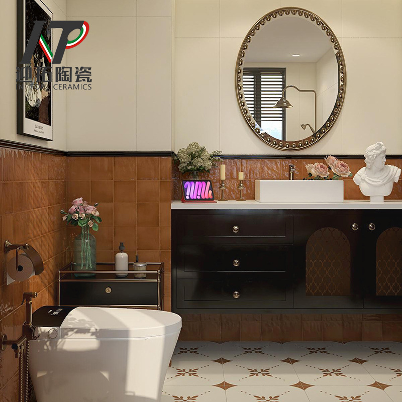 Ретро средний стиль цветочная плитка кремовый цвет градиент клетка кирпич 400X800 ванная комната кухня плитка настенная плитка