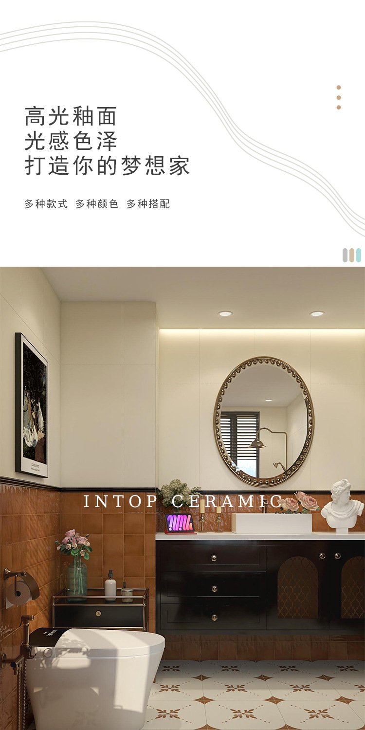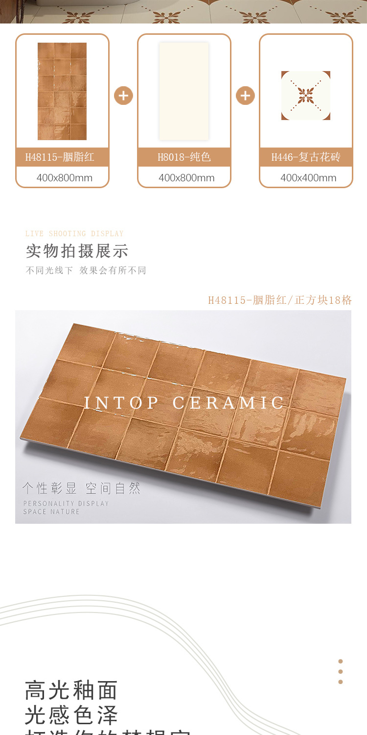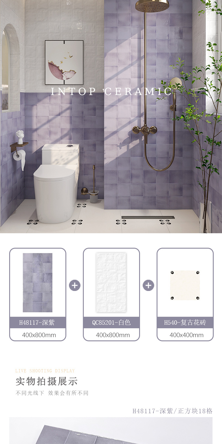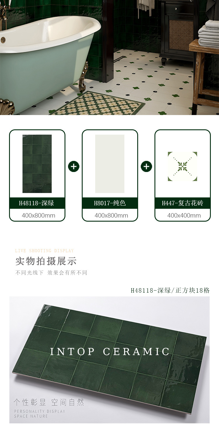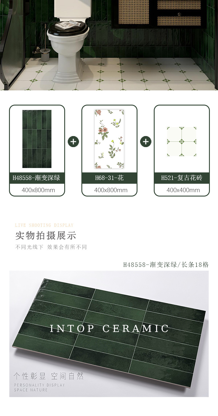 Ретро средний стиль цветочная плитка кремовый цвет градиент клетка кирпич 400X800 ванная комната кухня плитка настенная плитка