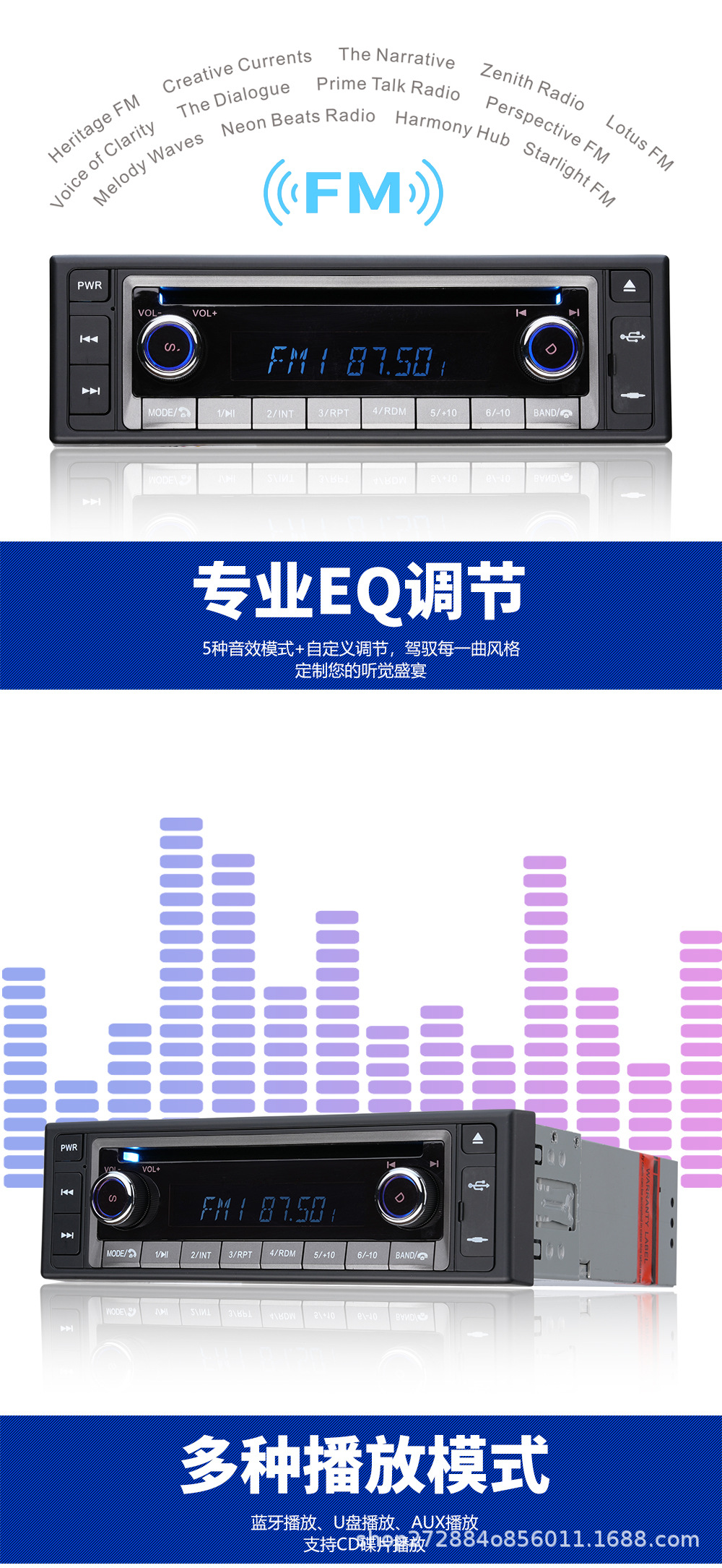 基本功能:①蓝牙功能;②收音机;③读U盘(音频)