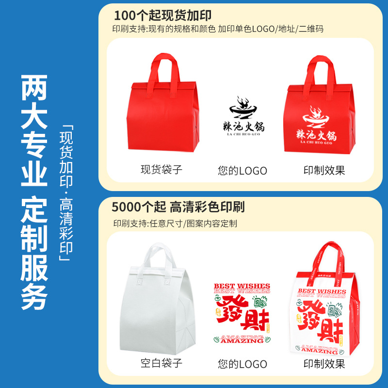 Изолирующий мешок для кейтеринга на вынос, индивидуальный мешок из алюминиевой фольги, нетканый изоляционный и холодный изоляционный мешок для упаковки на вынос с напечатанным логотипом