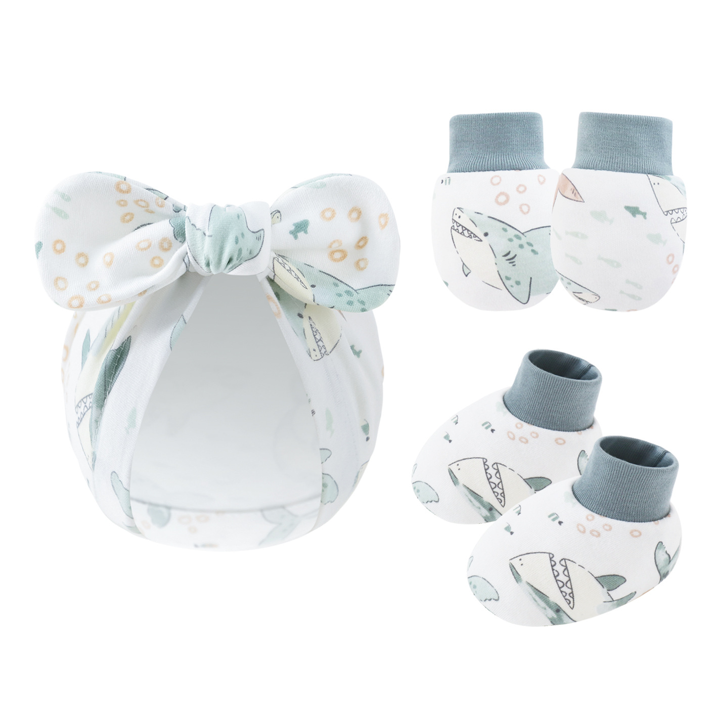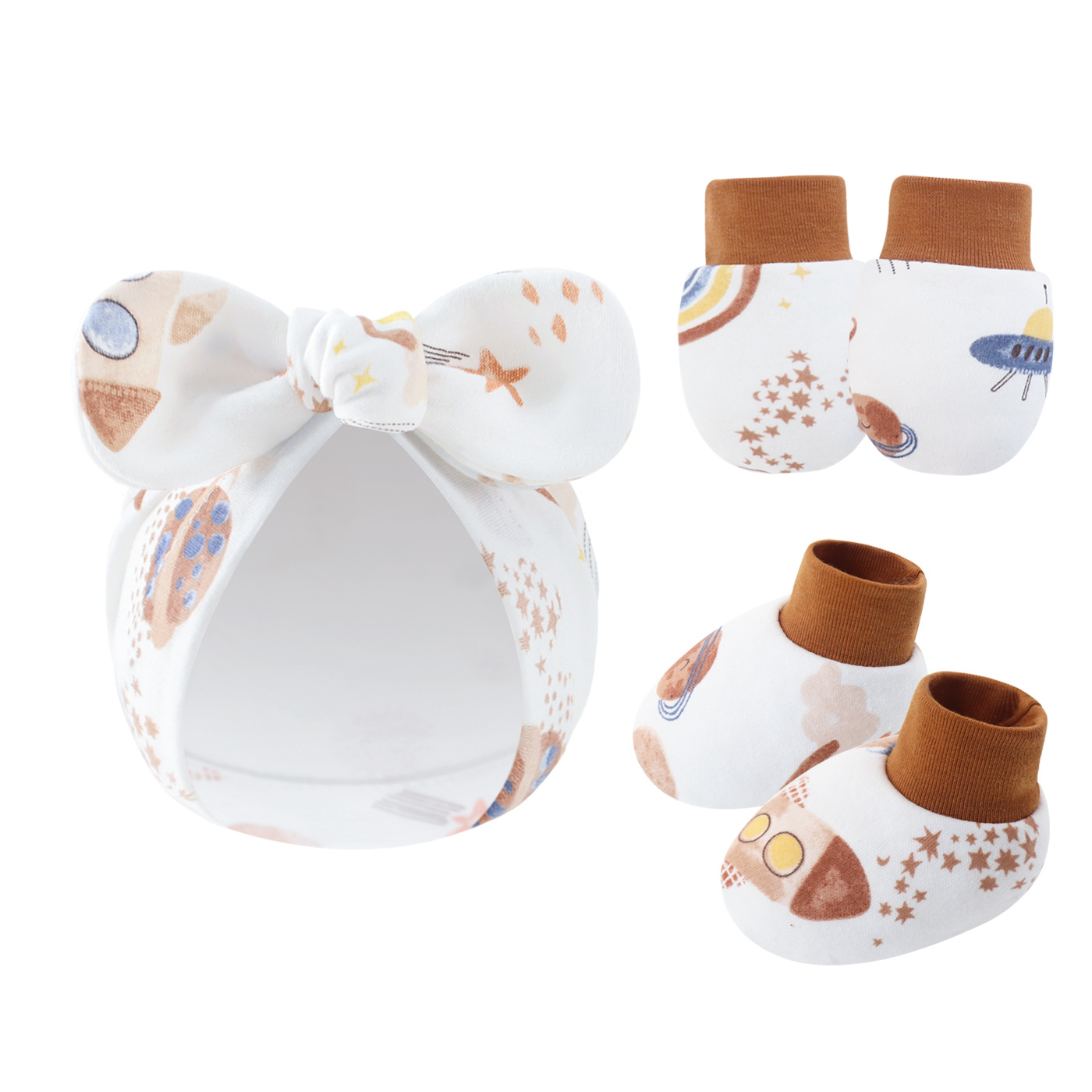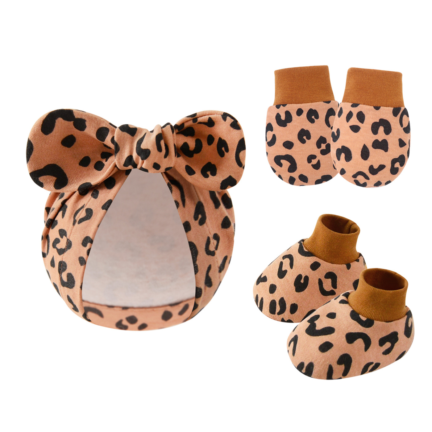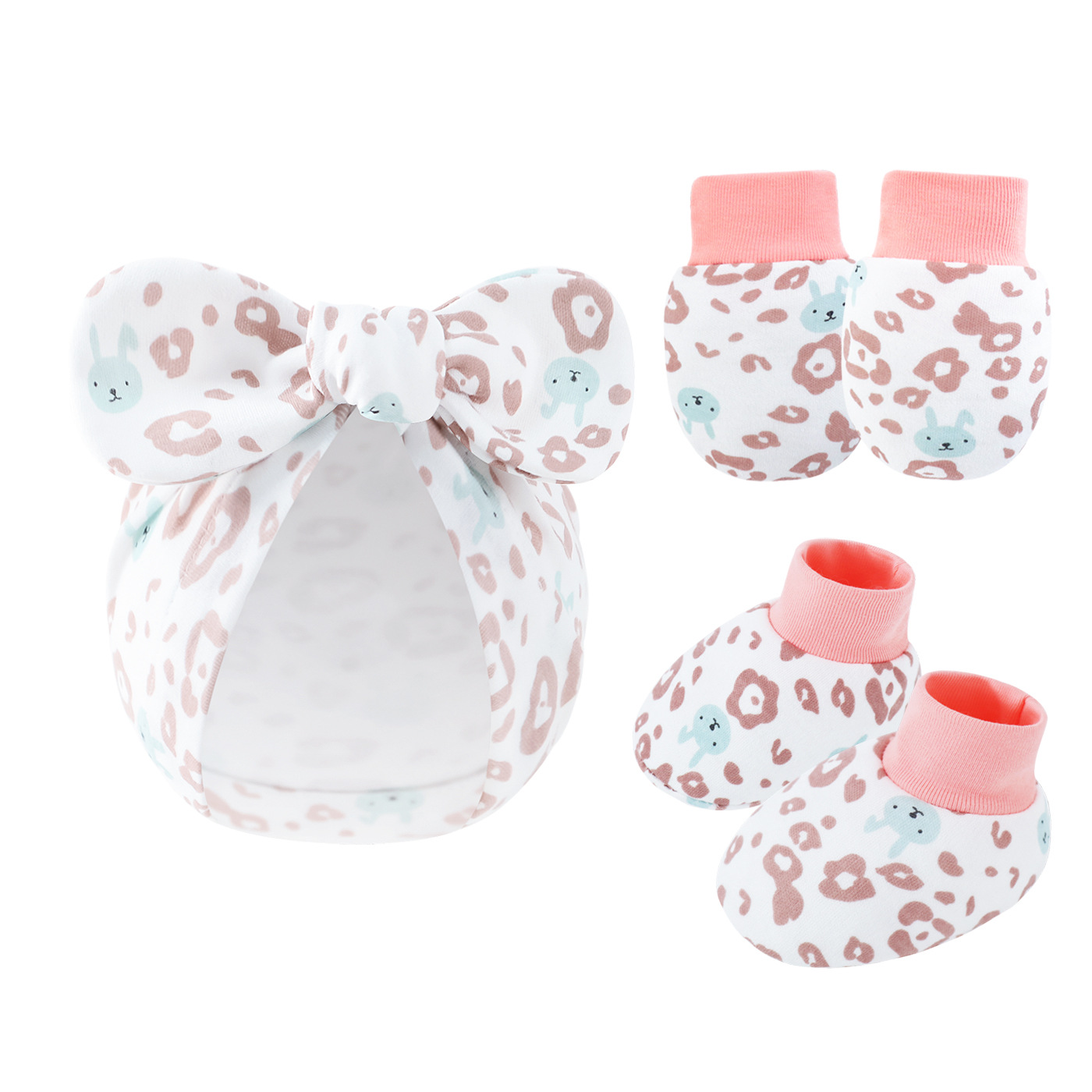 Новорожденный ребенок бант шапка детка против захвата перчатки чехол для ног из хлопка сотня башни мультяшный кролик уха пуловер шапка через границу
