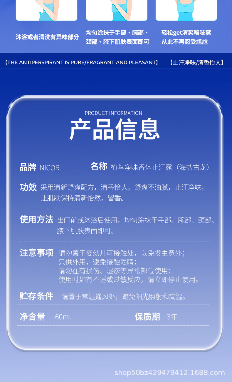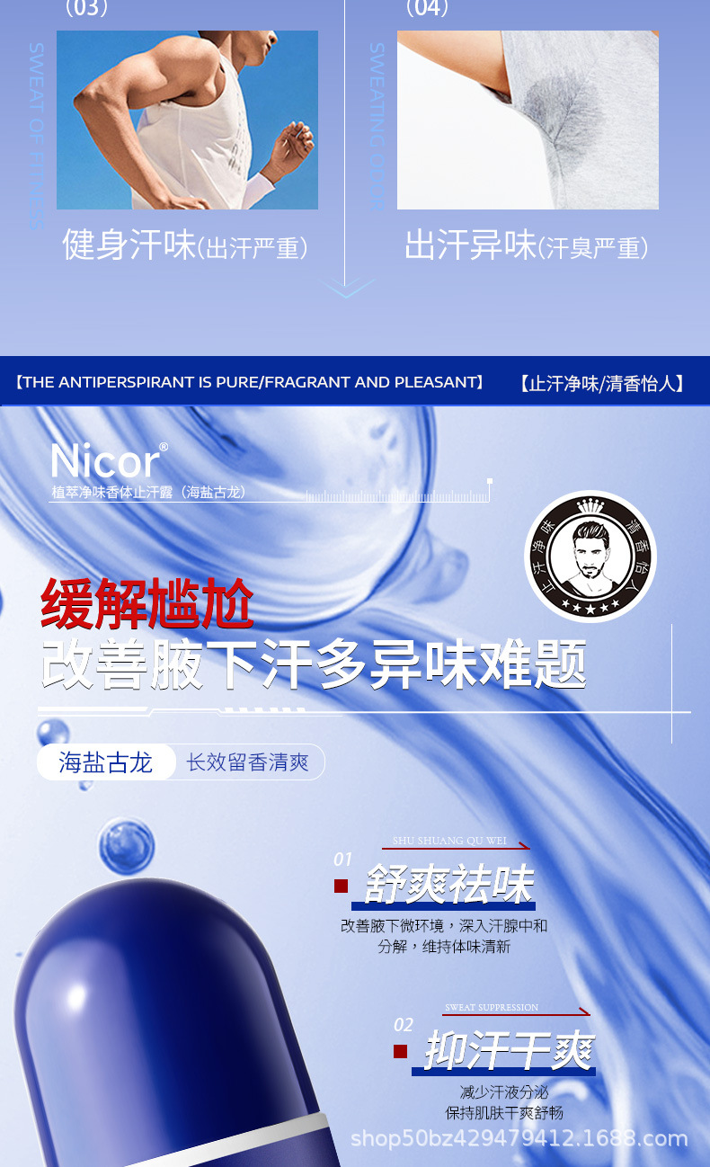 Дезодорант-антиперспирант Nicor для подмышек, длительного действия, свежий аромат, длительное сохранение сухости.