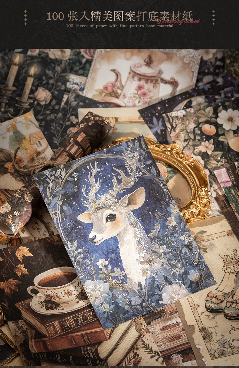 Серия коллекций Wandering Time Материал Бумага Декоративный материал для журналов Бумага Цветочное украшение с оленями Ретро-подарочный журнал.