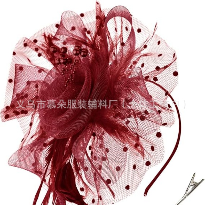 Европейские и американские головные уборы, свадебные аксессуары для волос в стиле ретро, повязки на голову с перьями, цветы из бисера, сетчатые обручи для волос, универсальные аксессуары для платья-чонсама.