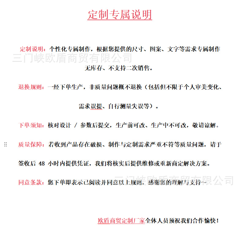 Возврат и обмен не предусмотрены, обработка осуществляется в соответствии с требованиями.; Регулировка разницы в цене только. Без доставки. Без возвратов или обменов. Индивидуальная обработка по запросу.