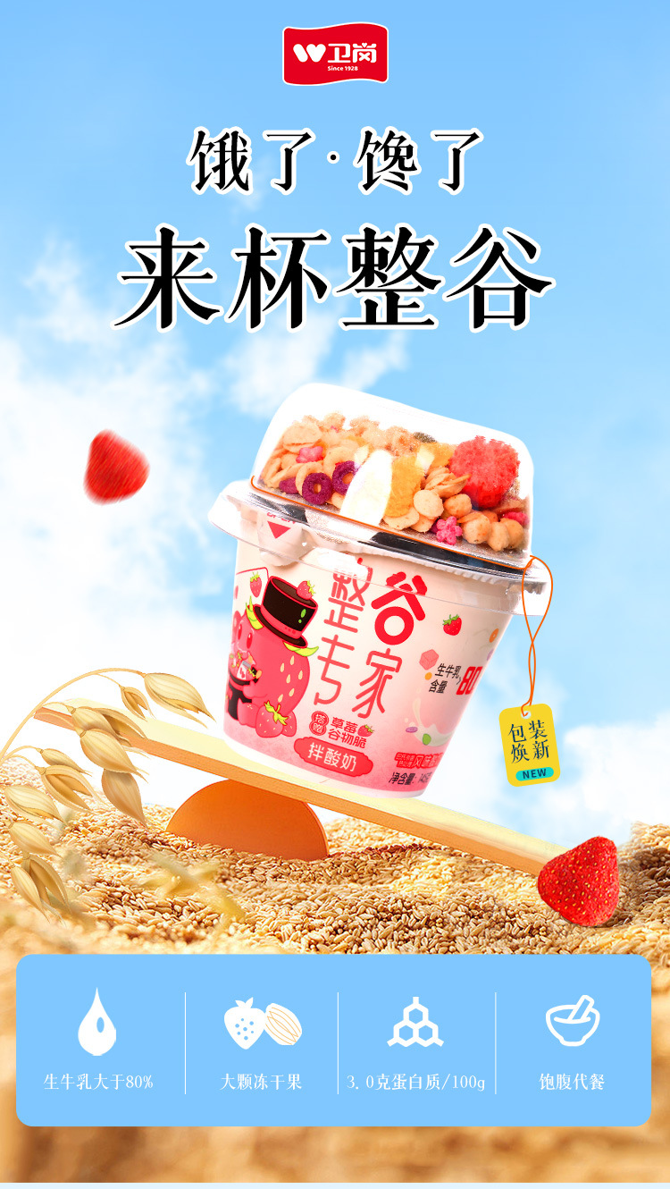 Weigang при комнатной температуре, цельнозерновые хлопья, жевательный йогурт, чашка, заменитель еды, 145 г * 6 чашек, готовый к употреблению йогурт, целая коробка, специальная цена