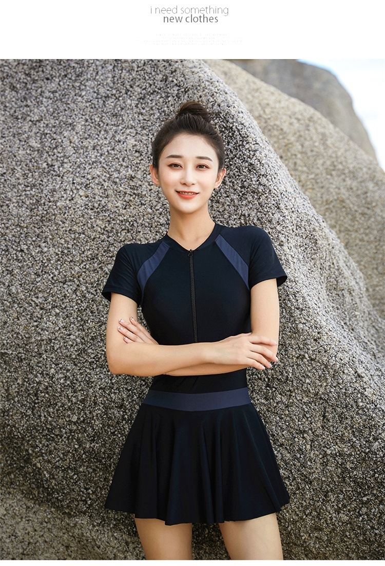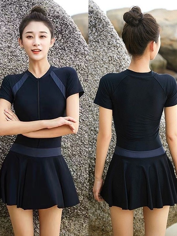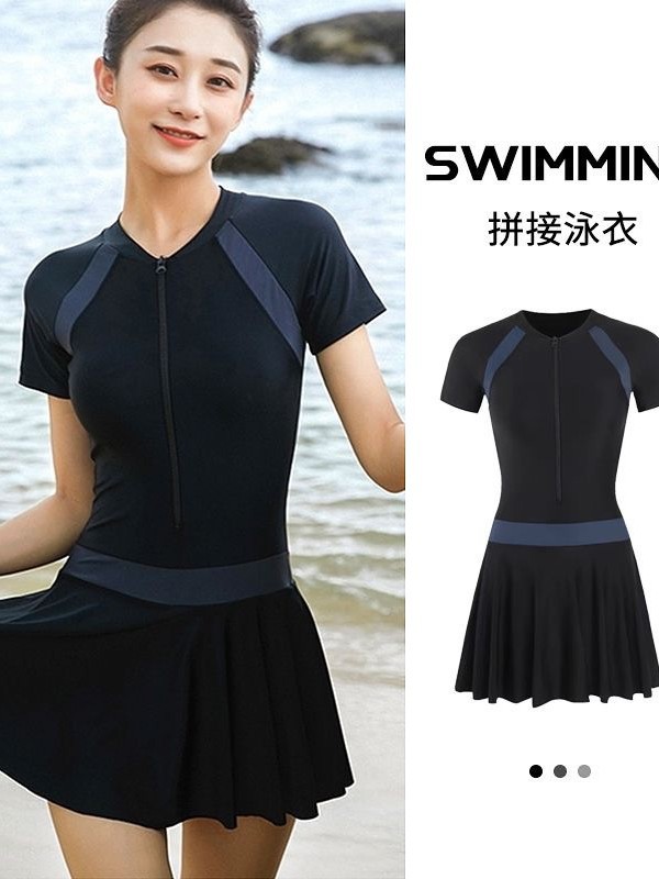 Летний новый стильный купальник контрастного цвета, женский цельный консервативный купальник для похудения, закрывающий живот, для плавания в помещении и на открытом воздухе