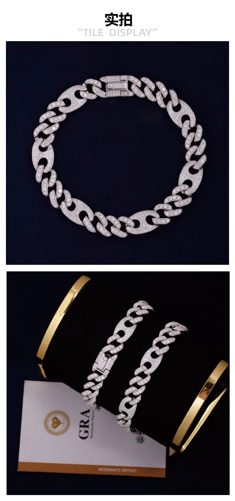 Браслет в стиле хип-хоп из серебра S925 с кубинской цепочкой и инкрустацией из муассанита цвета D, новый европейско-американский стиль, персонализированный браслет для мужчин и женщин.
