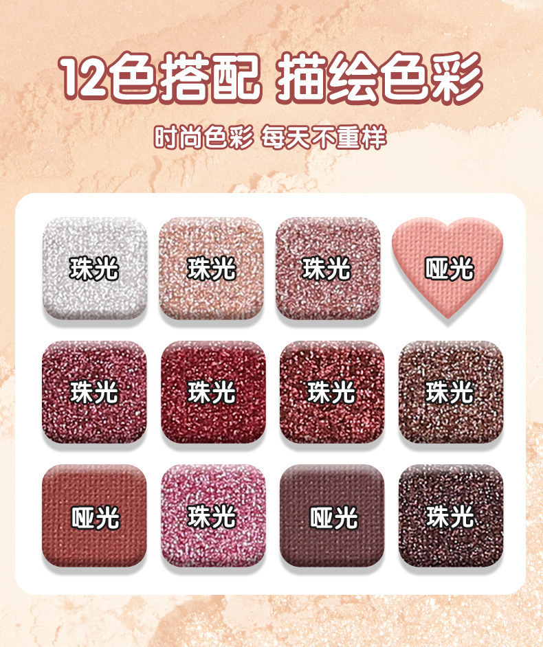 [Только экспорт/трансграничная Lameila] Двенадцатицветная перламутровая матовая палитра теней для век Lameila землистого цвета 5265