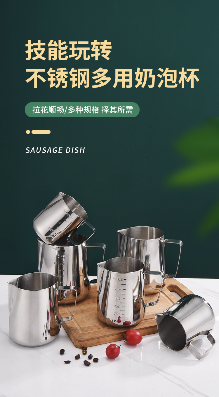 Чашка для латте-арта из нержавеющей стали 201, кувшин для латте-арта, чашка для взбивания молока, изысканная чашка для молочного крема, простая чашка для латте-арта