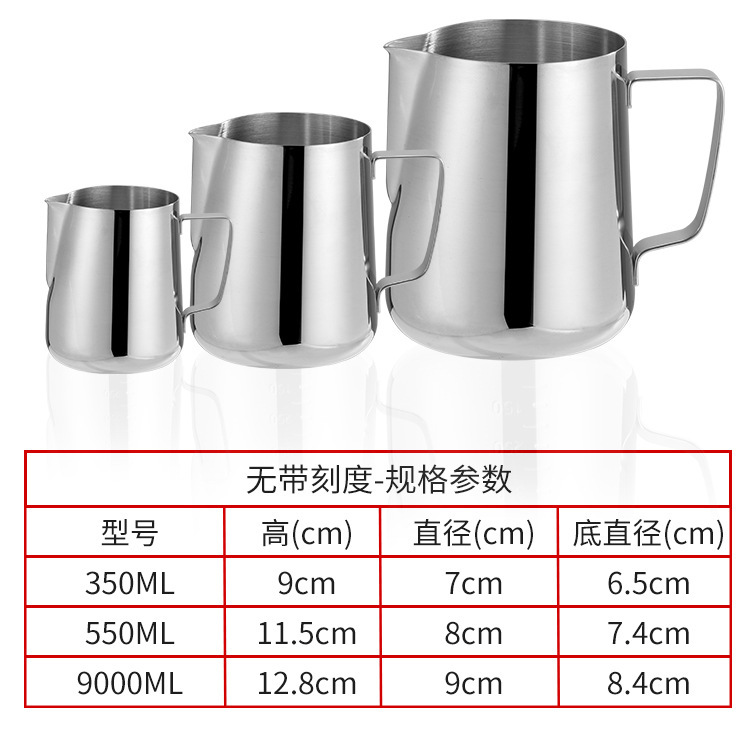 Чашка для латте-арта без шкалы емкостью 201–350 мл.; Чашка для латте-арта без шкалы емкостью 201–550 мл.; 201-900 мл чашка для латте-арта без шкалы; Стальная чашка для латте-арта с штамповкой емкостью 201–350 мл; Стальная чашка для латте-арта с штампованными шкалами, 201–550 мл; Стальная чашка для латте-арта емкостью 201–900 мл с штампованными шкалами; Чашка для латте-арта с внутренней шкалой 201–350 мл; Чашка для латте-арта с внутренней шкалой 201–550 мл; Чашка для латте-арта с внутренней шкалой, объем 201–900 мл; 304-350 мл, материал толщиной 0,7 (внутренняя шкала); 304-600 мл, материал толщиной 0,7 (внутренняя шкала); 304-1000 мл, материал толщиной 0,7 (внутренняя шкала); Чашка для латте-арта с внутренней и внешней шкалой, объем 304–350 мл; Чашка для латте-арта с внутренней и внешней шкалой, объем 304–550 мл; Чашка для латте-арта с внутренней и внешней шкалой, объем 304–900 мл