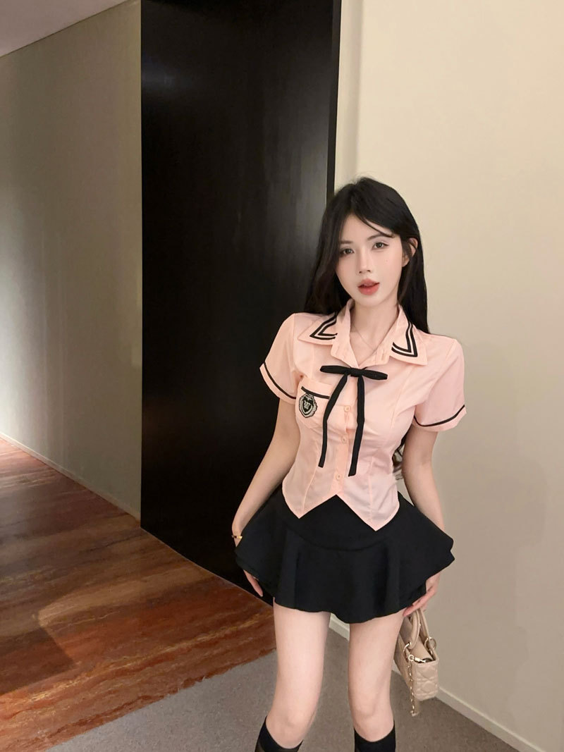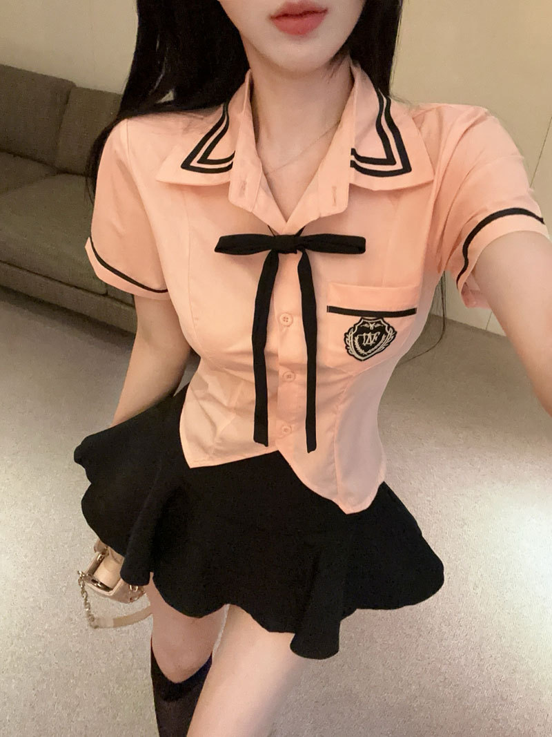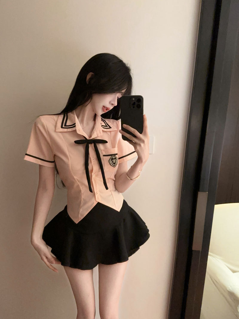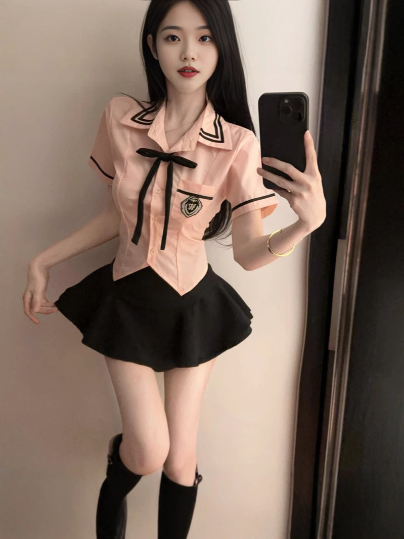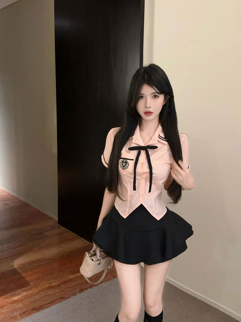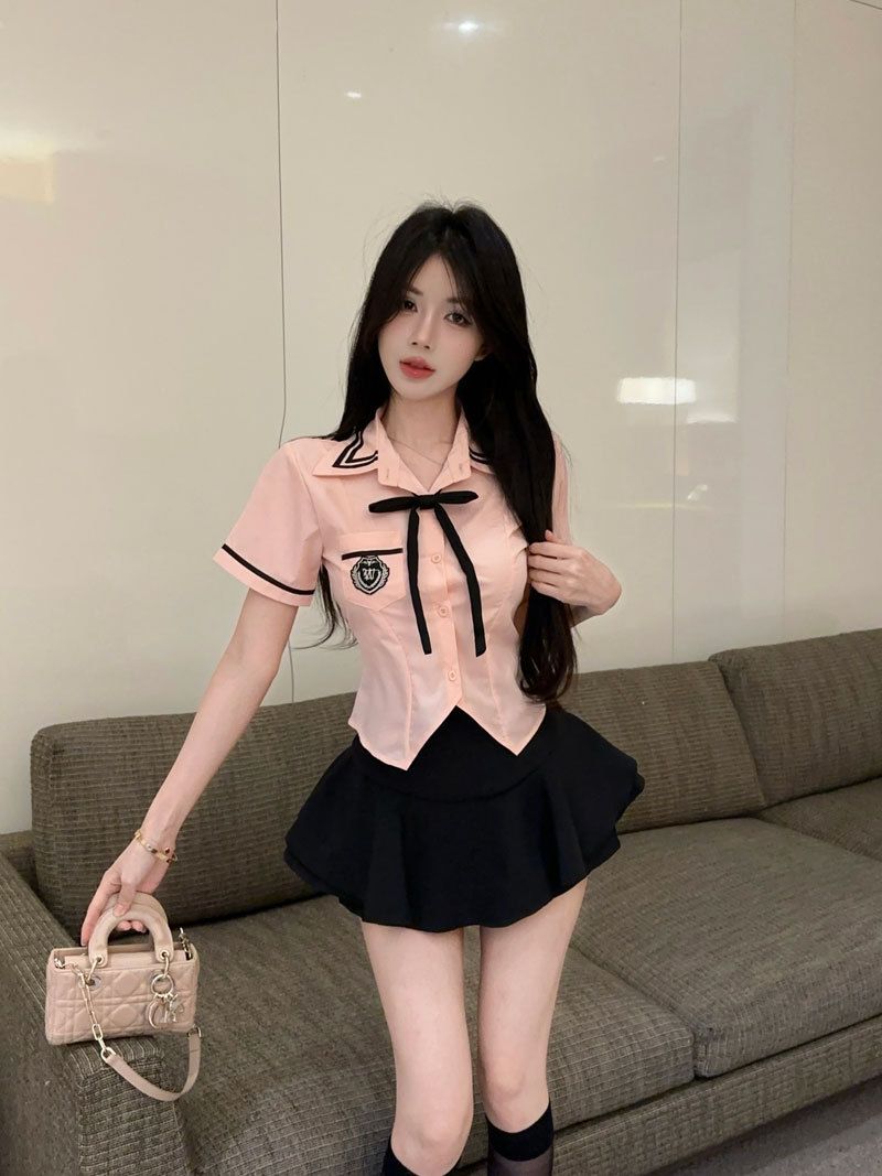 Рубашка с галстуком-бабочкой; черные брюки-кюлоты; Рубашка с галстуком-бабочкой + черные брюки и юбка.