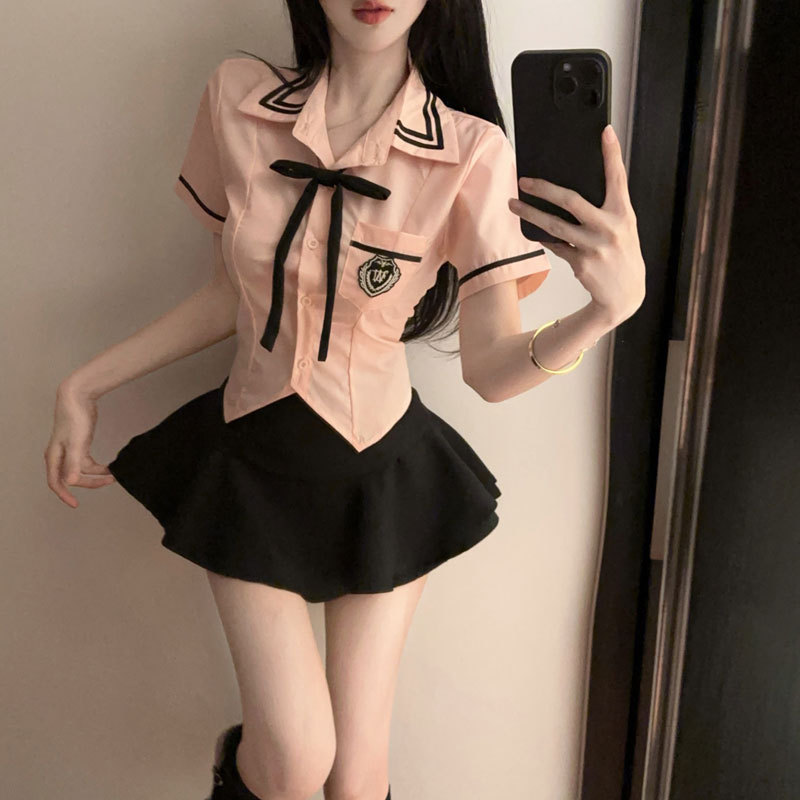 Комплект униформы JK в японском стиле, молодежная и милая рубашка с завышенной талией и пышной полупокровной юбкой с высокой талией, комплект из двух предметов.