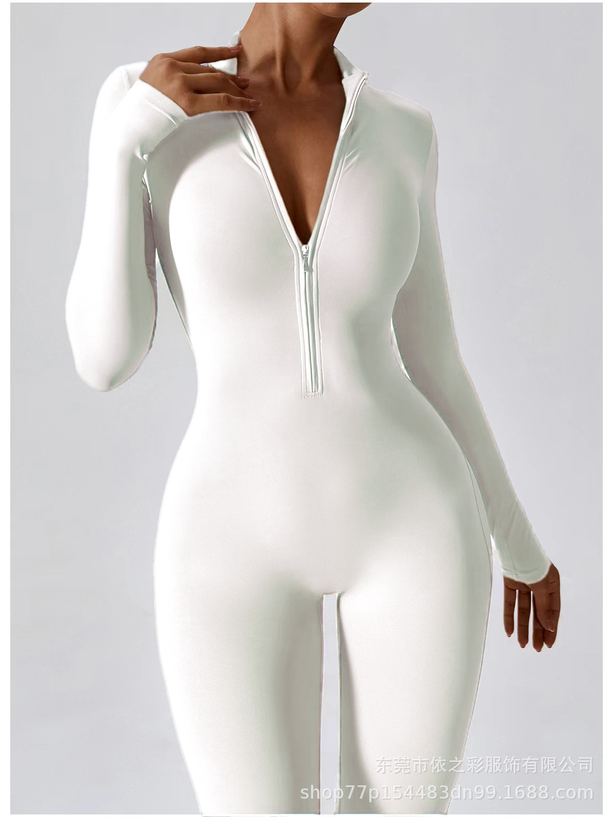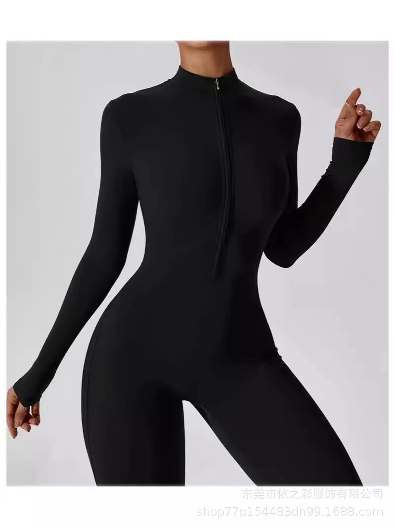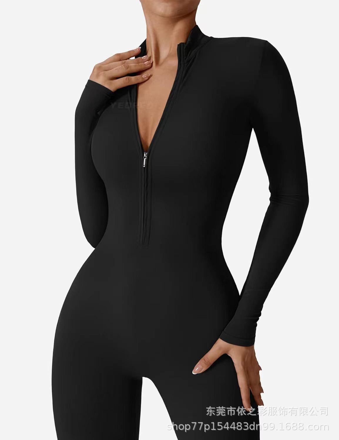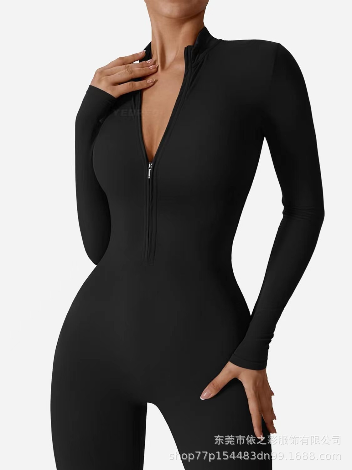 Трансграничные европейские и американские застежки-молнии обнаженные с длинными рукавами йога комбинезон интенсивность фитнес спорт комбинезон колготки высокий танец