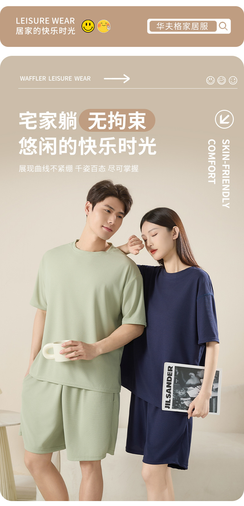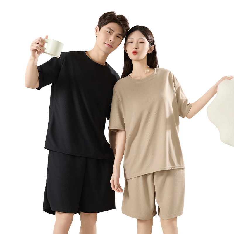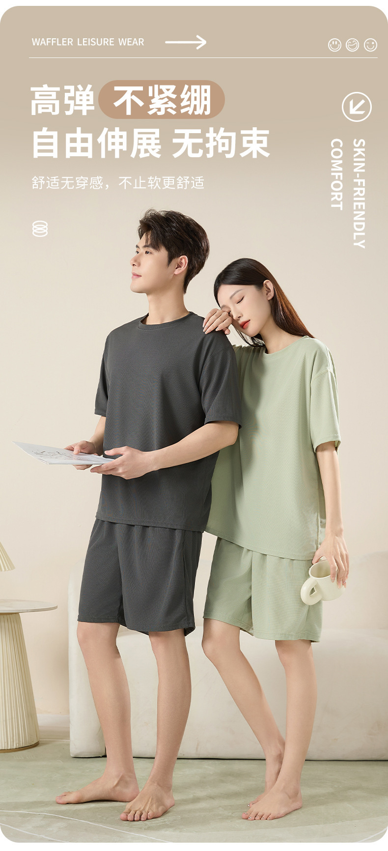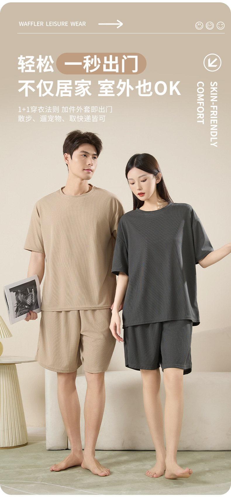 Вафельные пары пижамы Летние тонкие домашние женские шорты с короткими рукавами повседневные свободные мужские костюмы