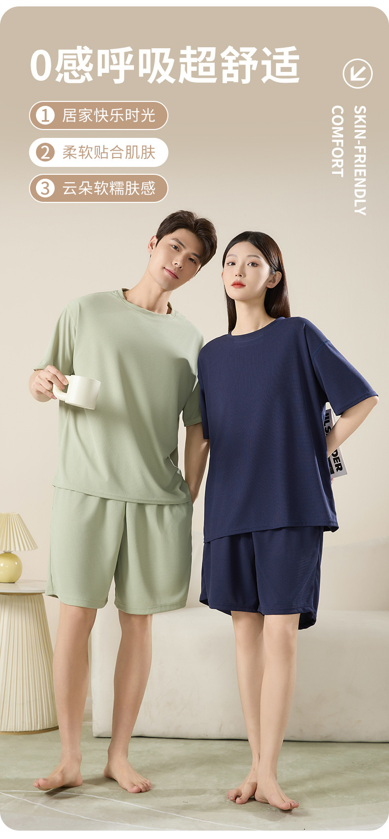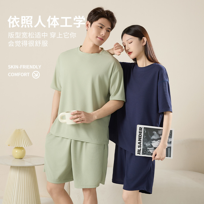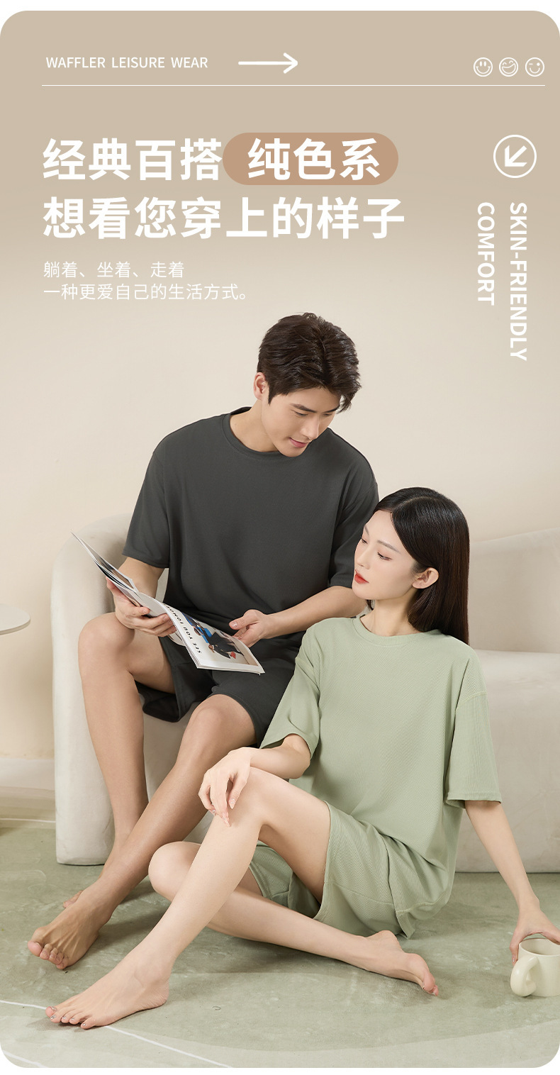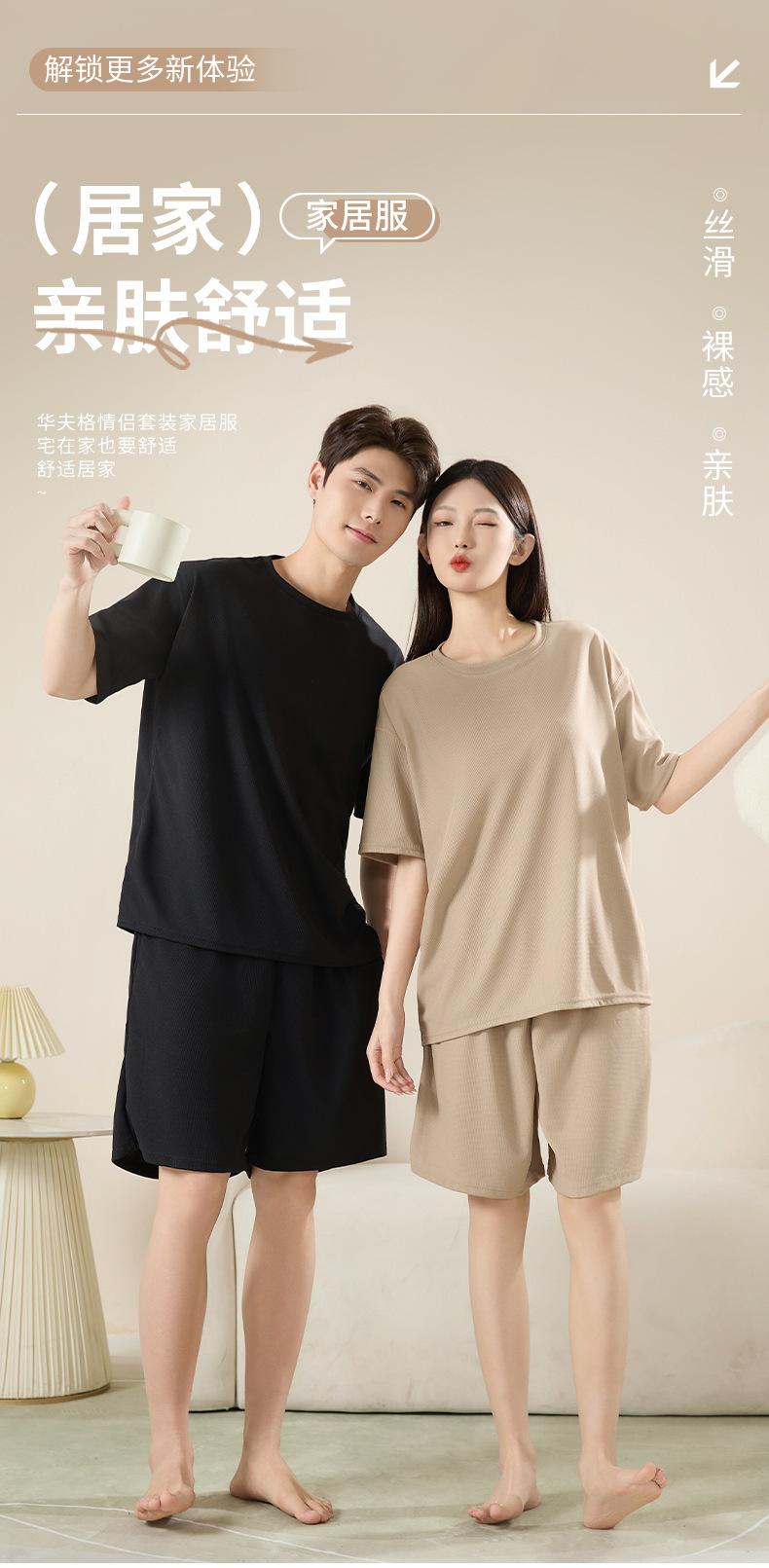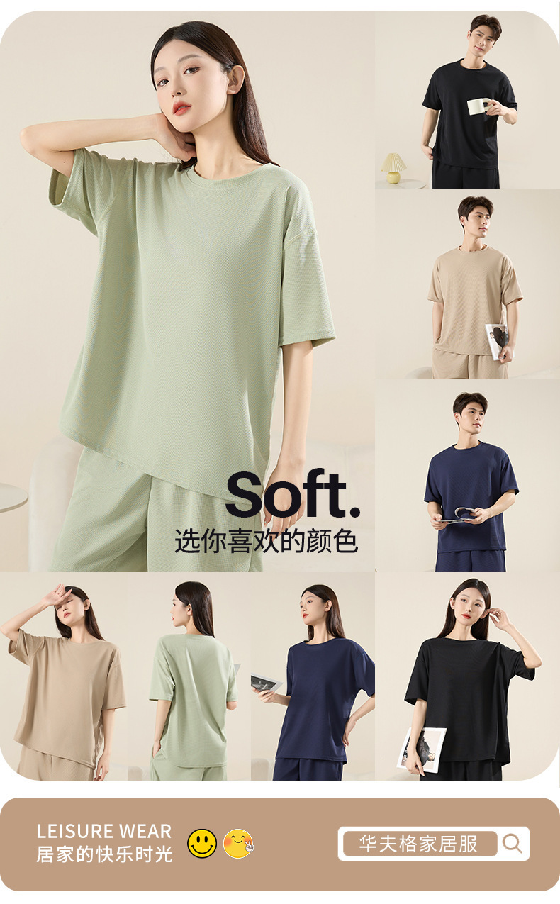 Вафельные пары пижамы Летние тонкие домашние женские шорты с короткими рукавами повседневные свободные мужские костюмы