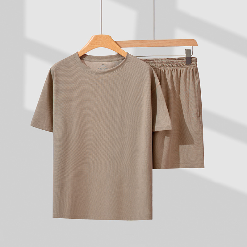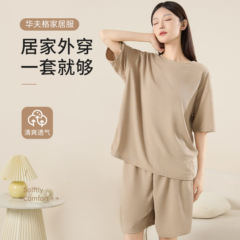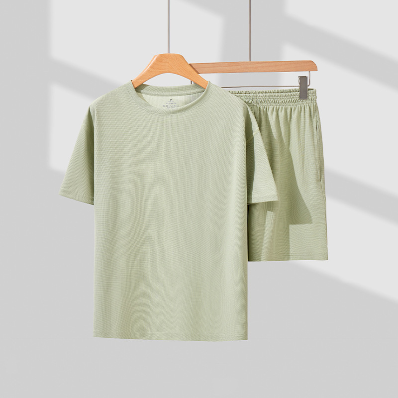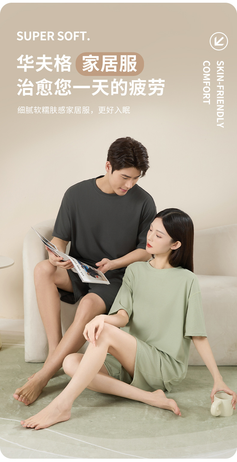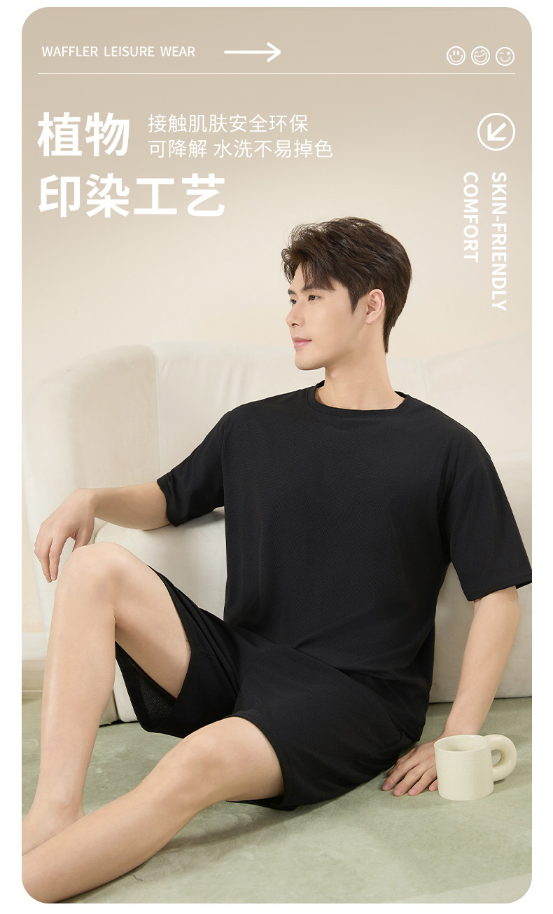 Вафельные пары пижамы Летние тонкие домашние женские шорты с короткими рукавами повседневные свободные мужские костюмы