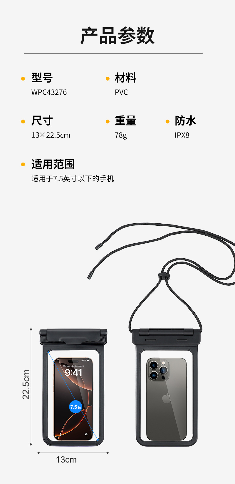 容量:适用于7.5''以下手机,IPhone 16 Pro Max/三星 Galaxy S25 Ultra