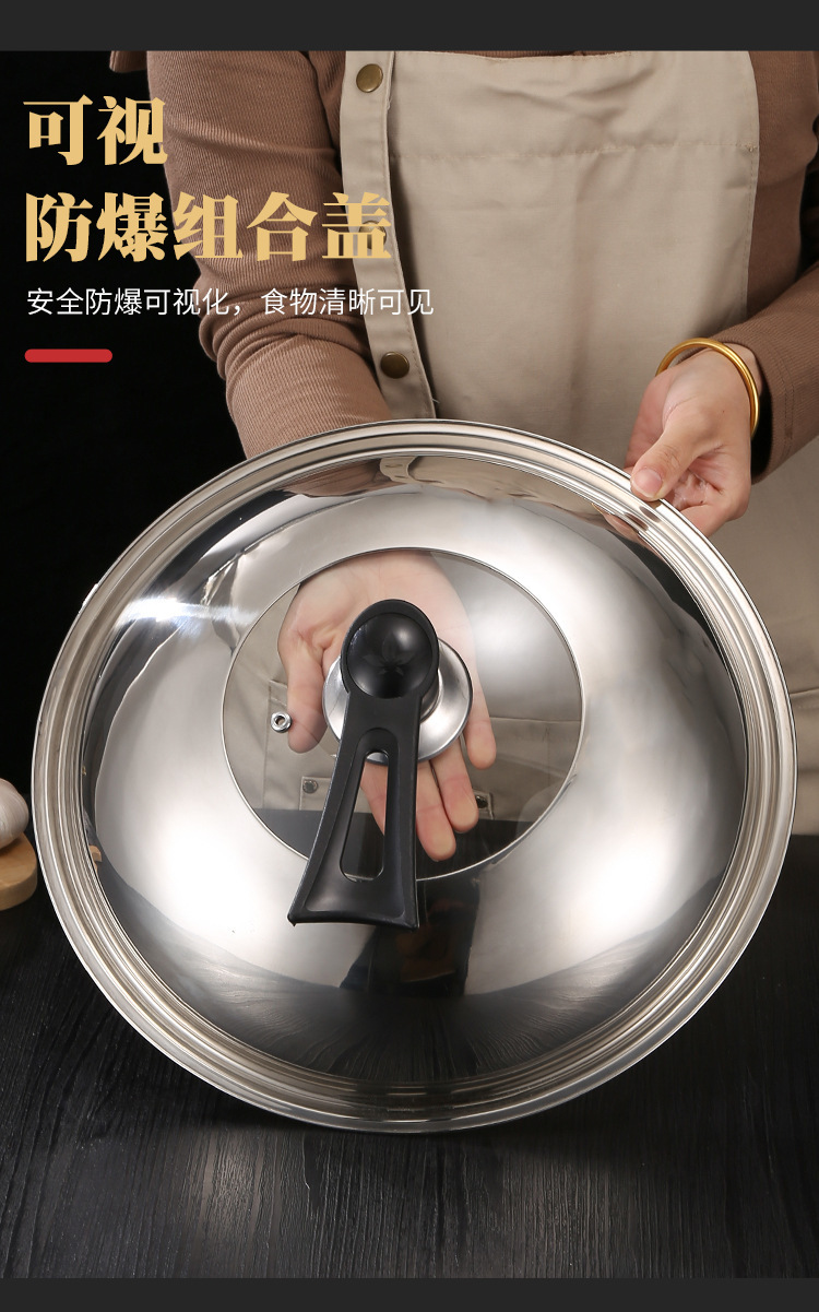 Производитель оптовая крышка из нержавеющей стали взрывозащищенное стекло визуальная комбинация крышка вока плоская крышка большой кастрюли 28CM-42CM
