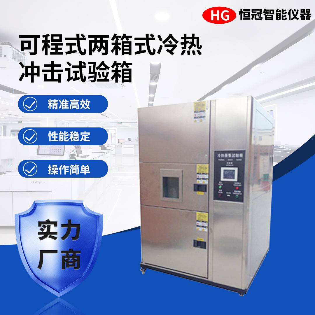Программируемая камера для испытаний на горячий и холодный шок с двумя резервуарами, среда для моделирования влажности и тепла, машина для испытаний на старение с чередованием горячего и холодного шока.