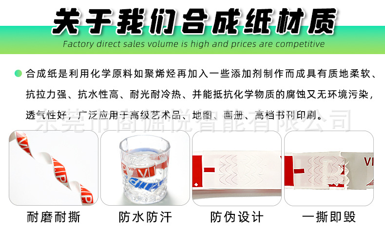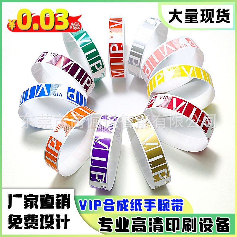 Одноразовый VIP-браслет из синтетической бумаги для парков развлечений, водонепроницаемый, для использования на открытом воздухе
