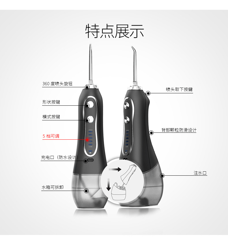 Портативный струйный ирригатор H2ofloss с водой 5 модельми 3 00 мл