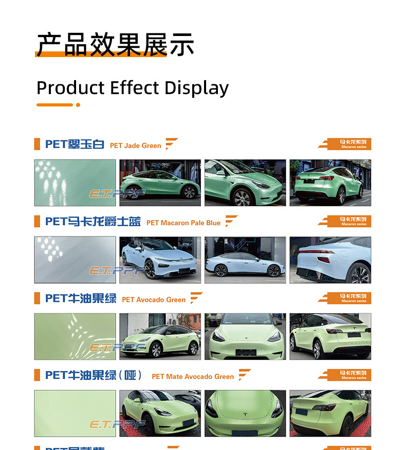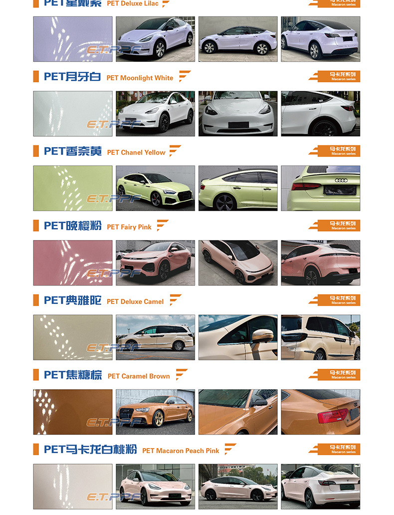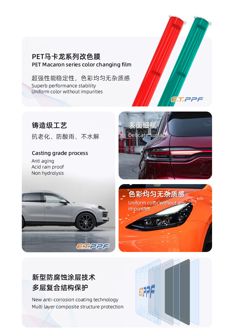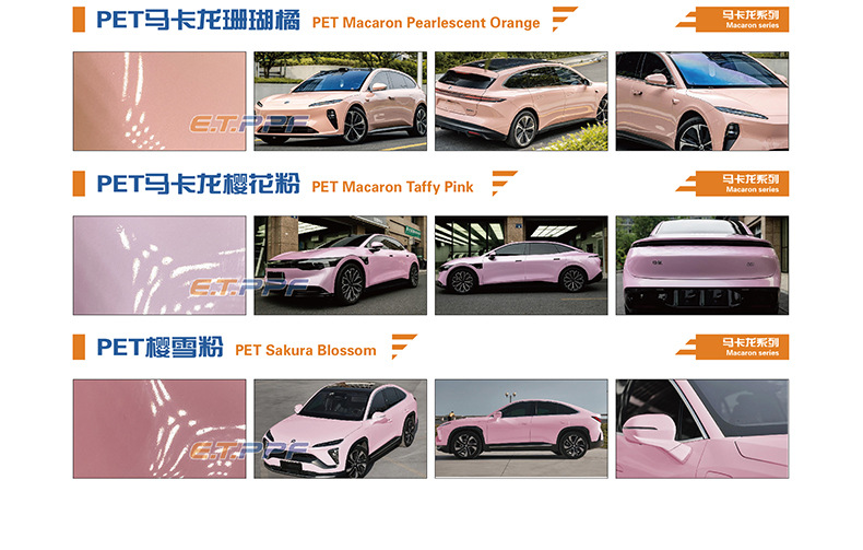 Автомобильная серия Macaron, литейная пленка из ПВХ, меняющая цвет, ПЭТ-дно, глянцевая поверхность, свежая, без оранжевых линий, сверхпроводящий газ, прямая продажа