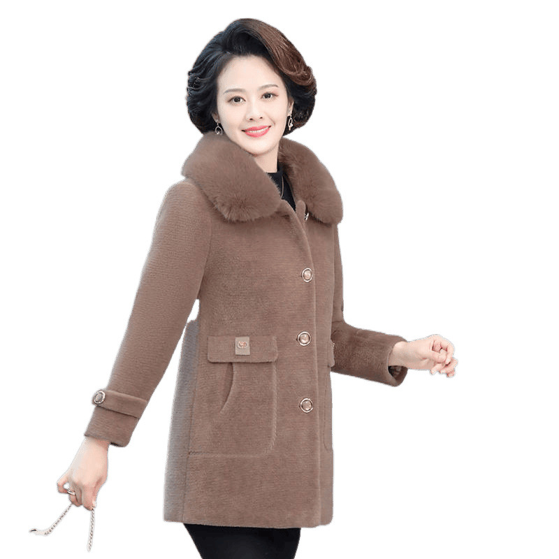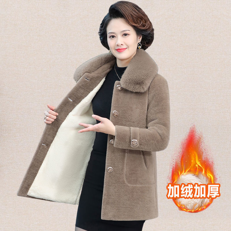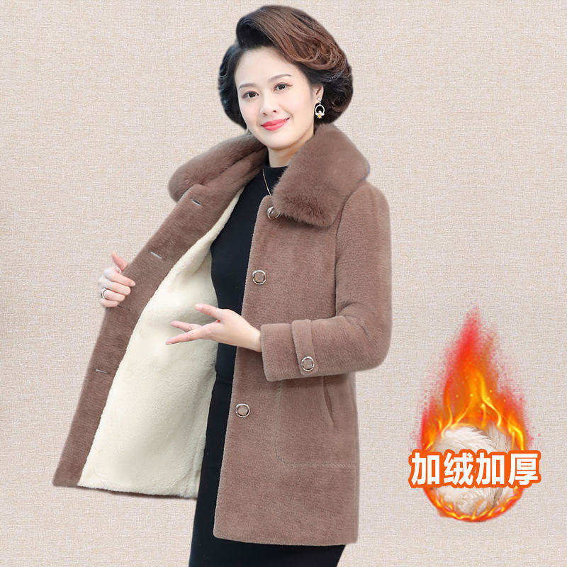 Женская одежда среднего и пожилого возраста, одежда для мам, высококачественная верхняя одежда из искусственного норкового бархата, верхняя одежда с бархатным утолщенным меховым воротником, зимняя одежда средней длины.