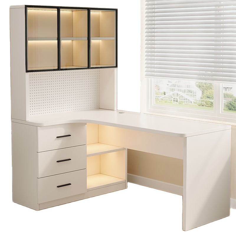 Кремово-белый угловой письменный стол + перфорированная доска своими руками-правый шкаф; Кремово-белый угловой письменный стол + перфорированная доска-шкаф «сделай сам» слева