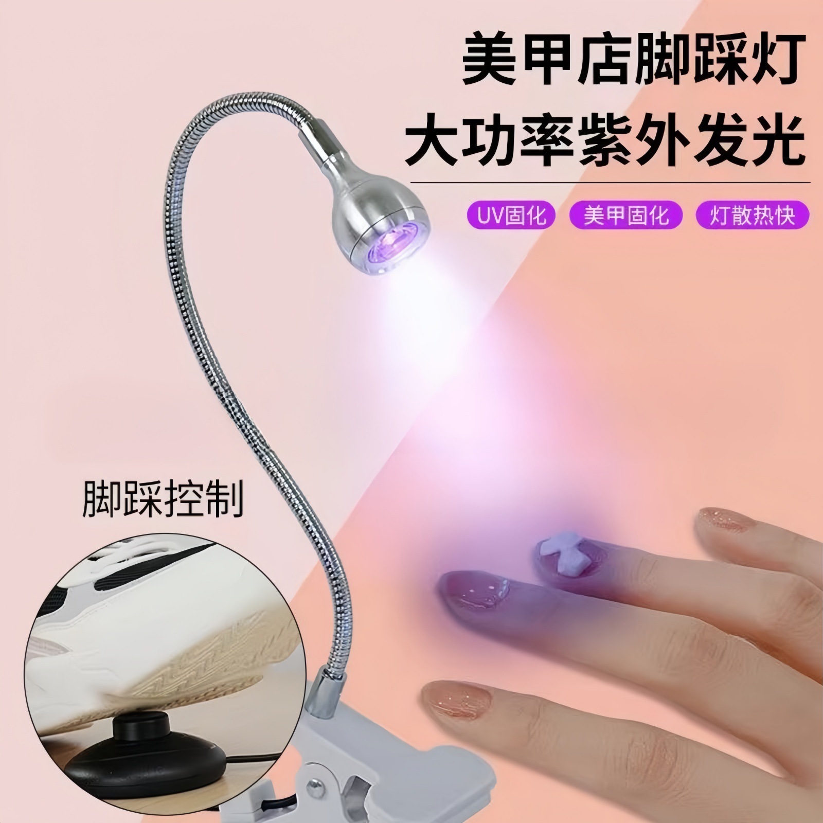 Лампа для маникюра с одним словом на гибкой стойке, ножной переключатель, фиолетовая зажимная лампа с УФ-отверждением, светодиодная быстросохнущая машина для фототерапии, трансграничная горячая модель