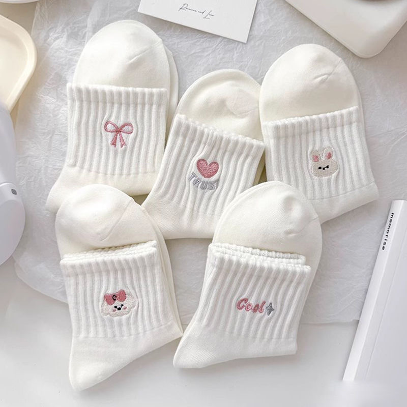 Весенние и летние девушки корейские милые носки ins прилив спортивный стиль женский хлопок дышащий розовый мультяшный вышивка носки