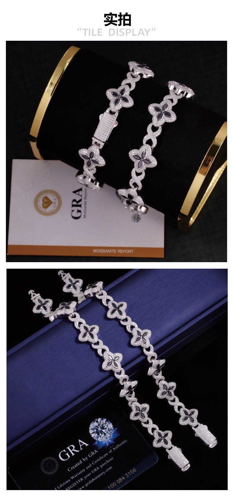 Модный и персонализированный браслет в стиле хип-хоп с черным четырехлистным клевером, инкрустированный муассанитом, из серебра S925, для мужчин и женщин, пользующийся большим спросом на международном рынке.