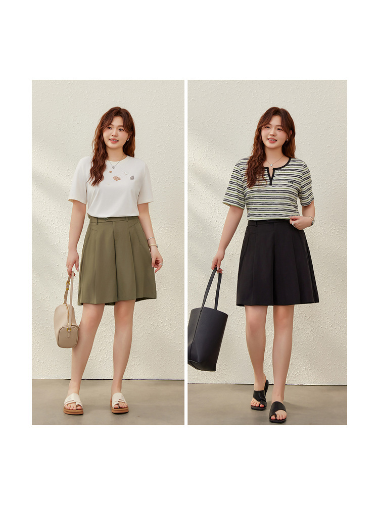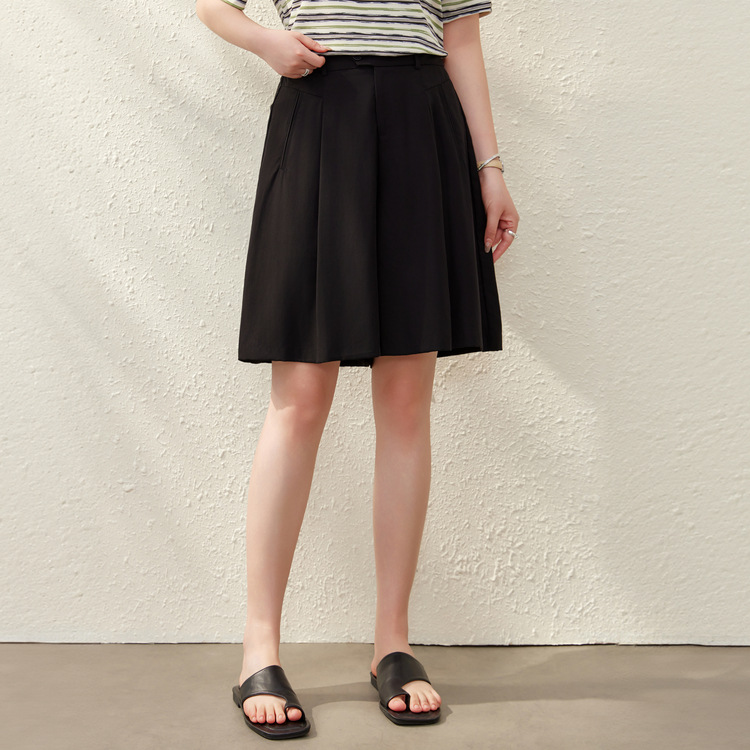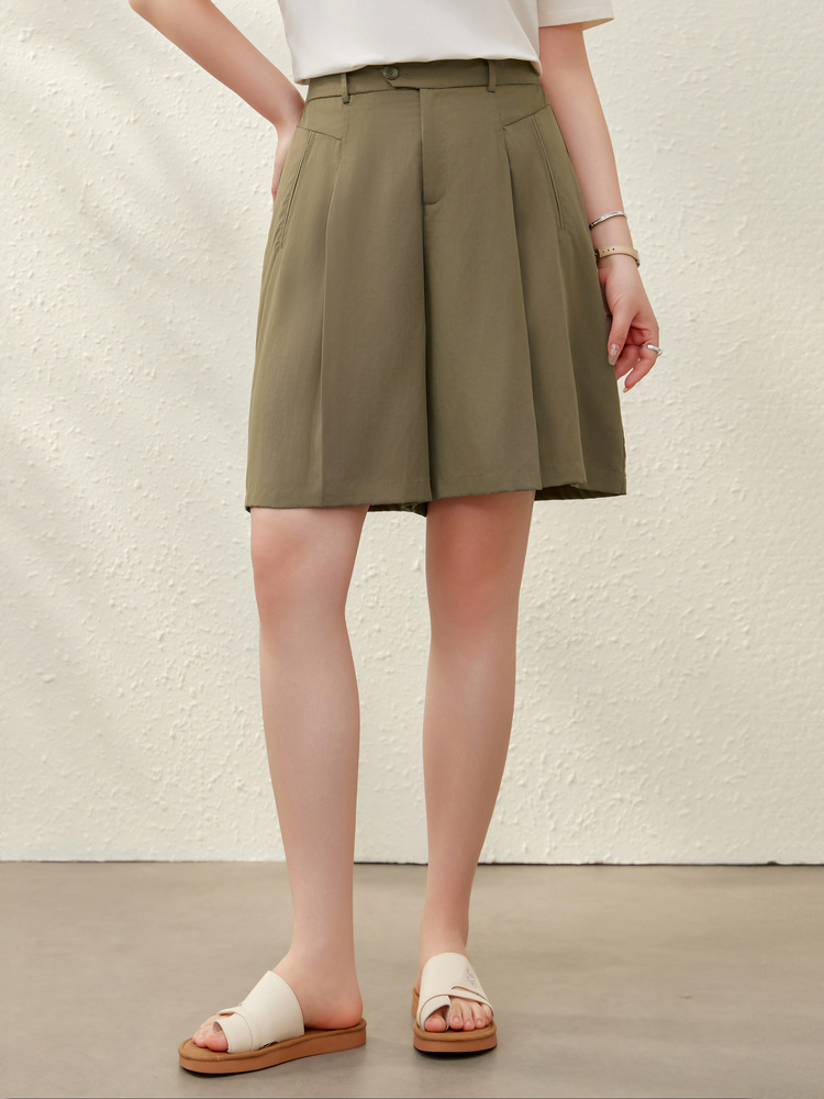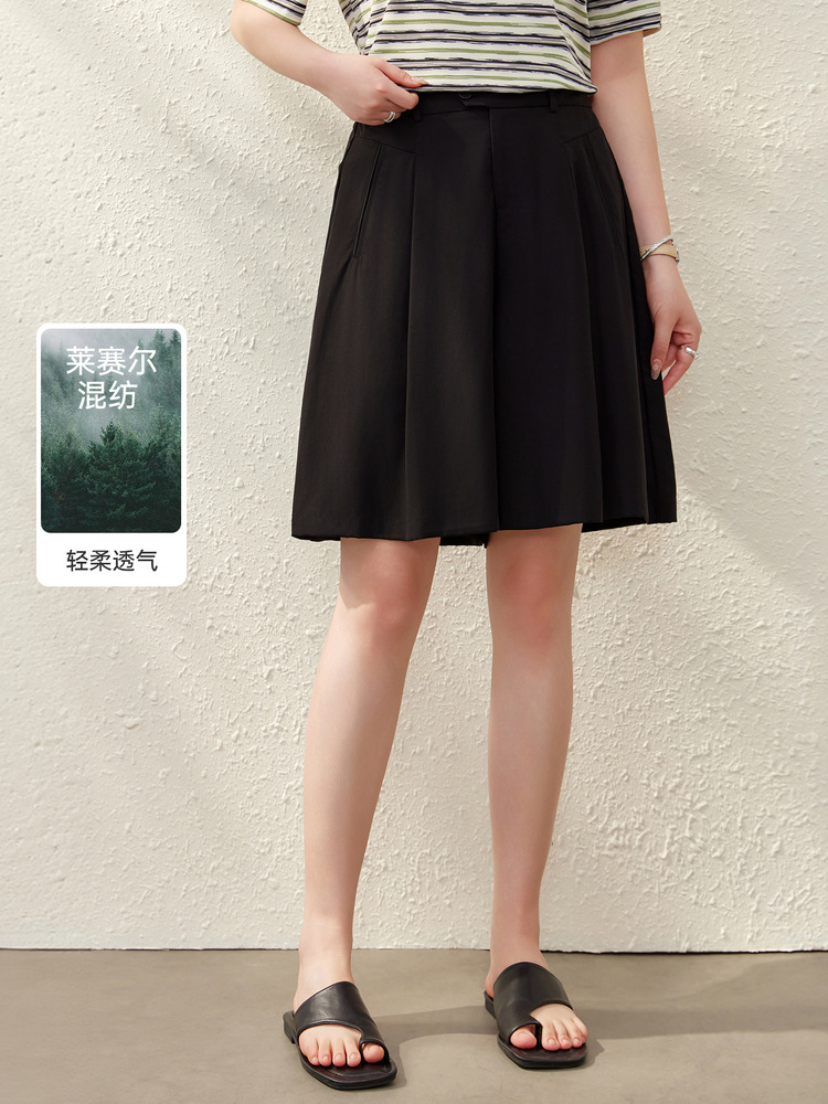 [Плиссированные брюки-кюлоты] Льняные шорты из лиоцелла с эластичной резинкой на талии, тонкие женские шорты больших размеров, летний новый стиль, мм